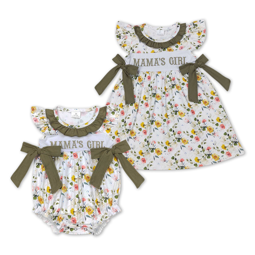 MAMA'S GIRL Embroidery Flowers Print Sisters Mother's Day Matching Clothes