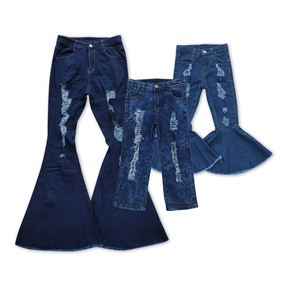 Mommy and Me Matching Jeans- Navy Denim Hole Bell Bottom Pants