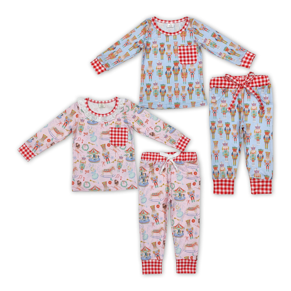 Nutcracker Soldier Print Sibling Christmas Bamboo Pajamas Matching Clothes