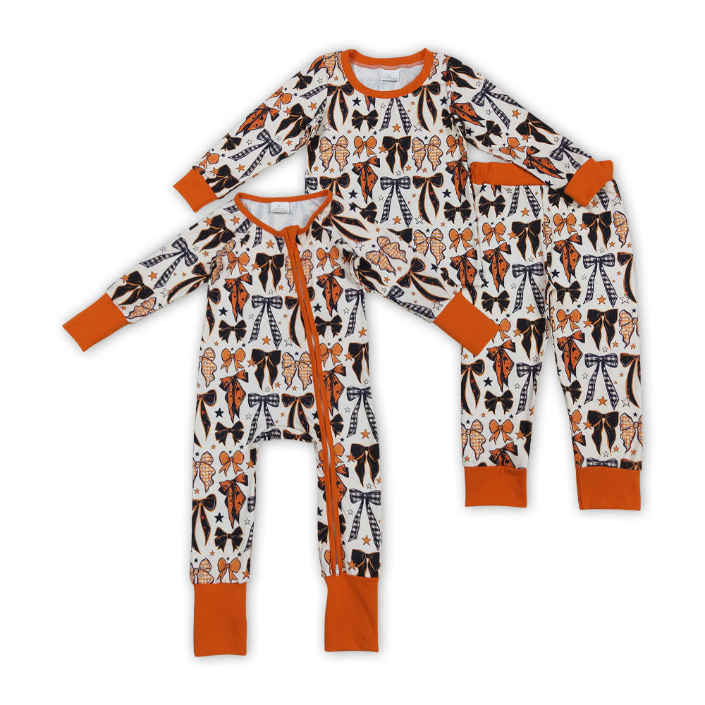 Orange Bows Print Girls Halloween Pajamas Matching Clothes