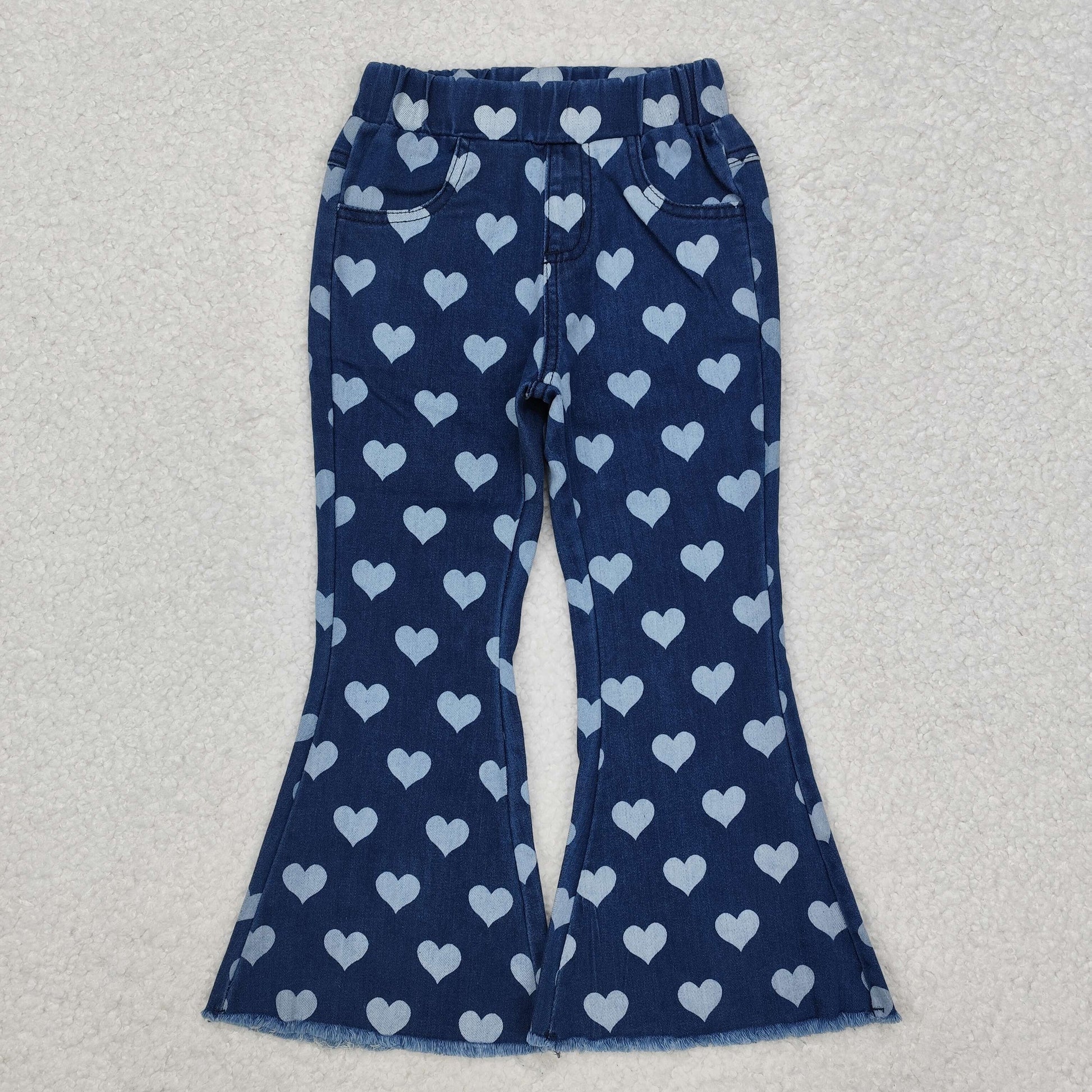 P0333 Heart Denim Bell Bottom Jeans Girls Valentine's Pants