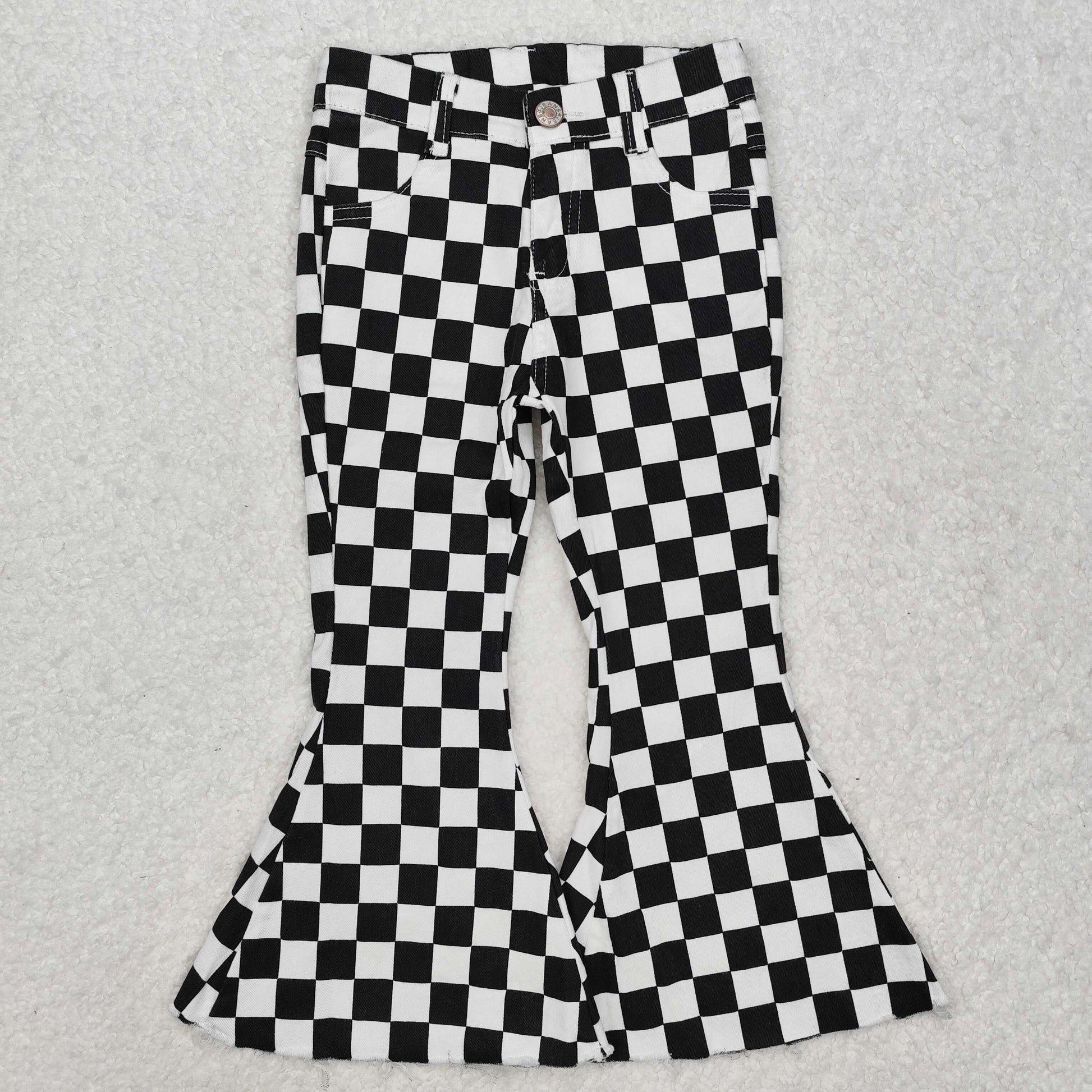 P0349 Black Plaid Denim Bell Bottom Jeans Girls Pants
