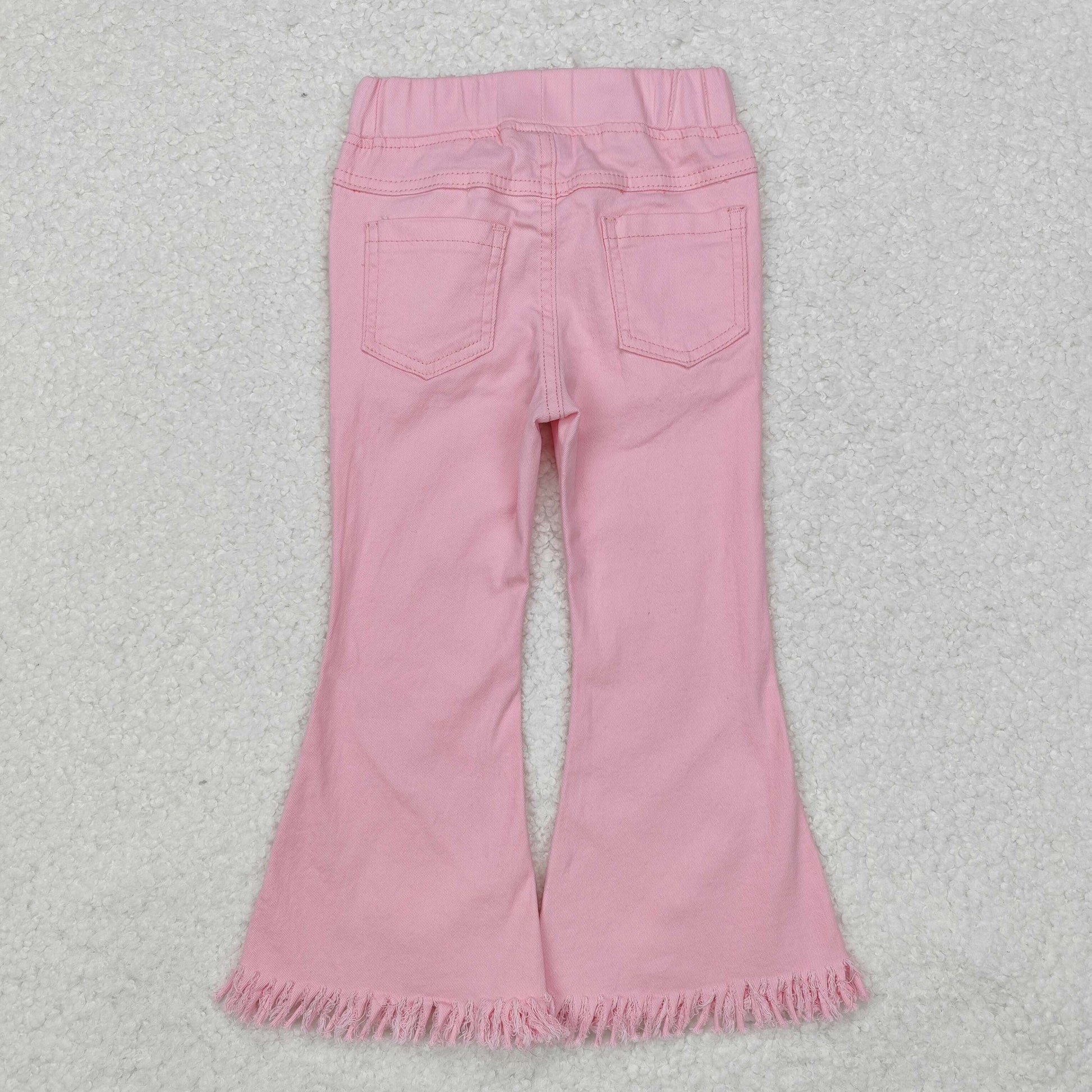 P0463 Pink Denim Tassels Bell Bottom Jeans Girls Fall Pants