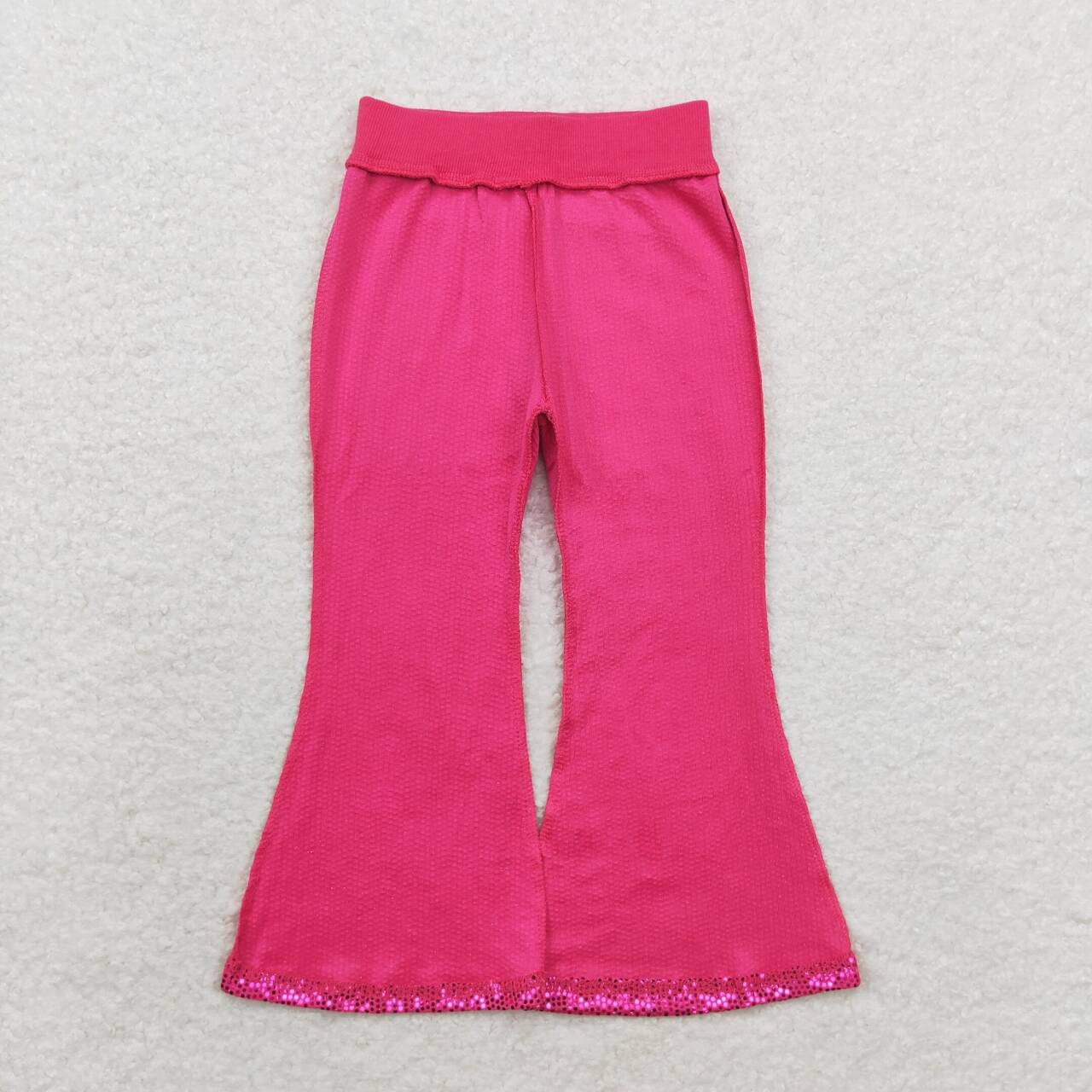 P0499 Hotpink Sequins Girls Bell Bottom Pants