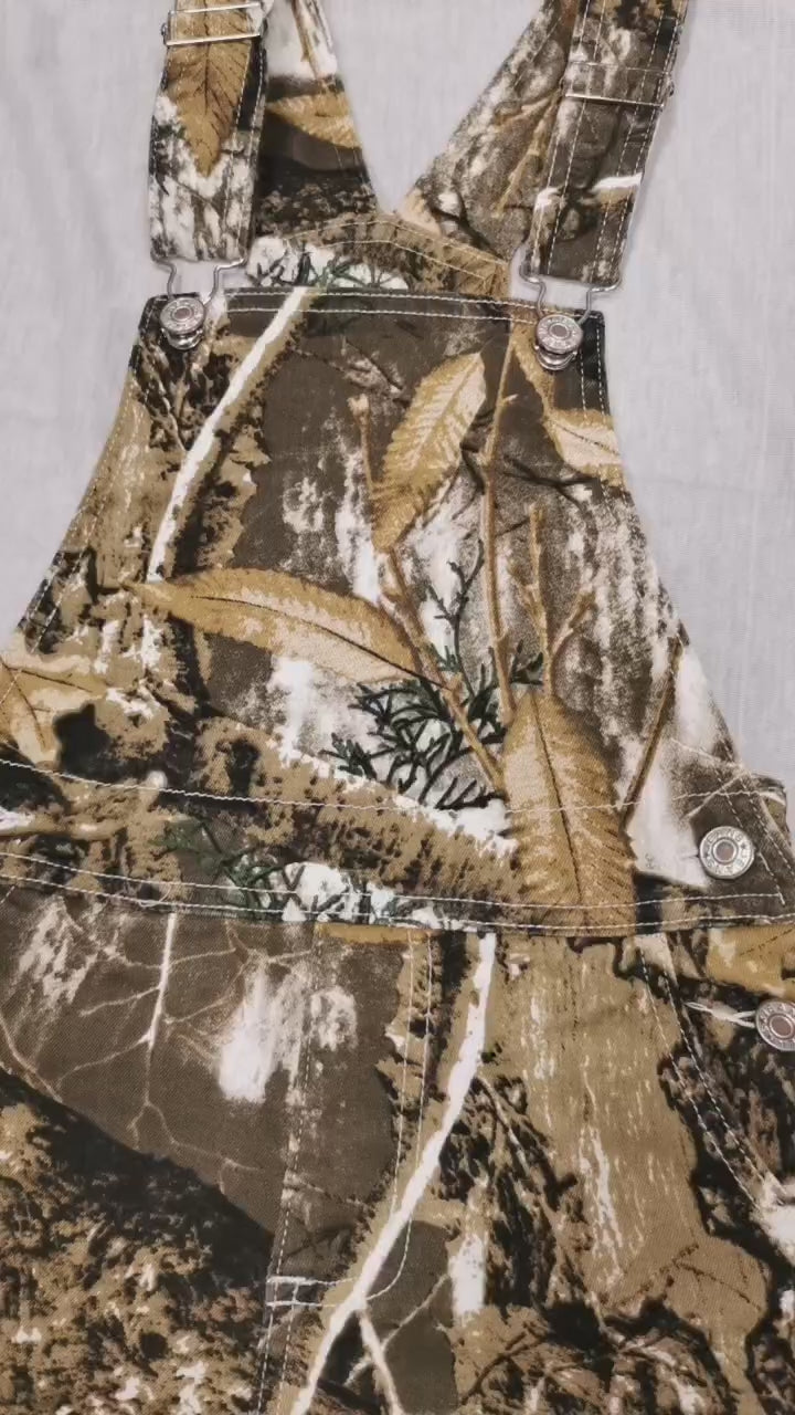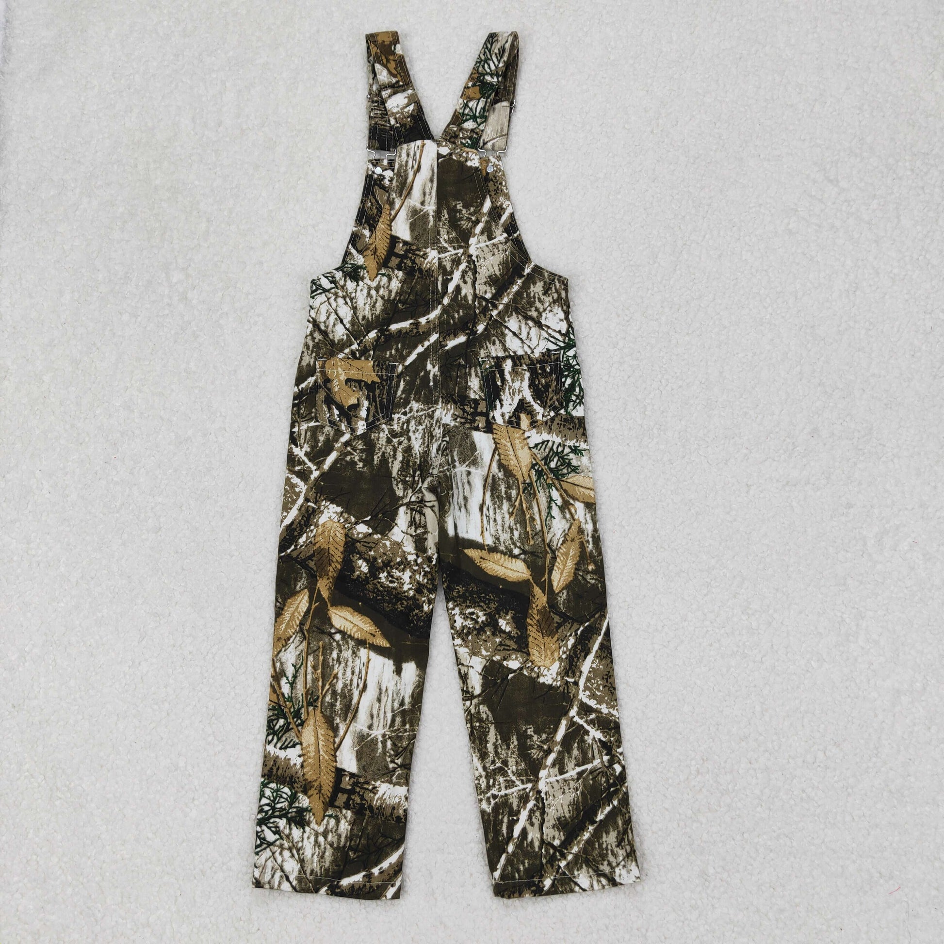 P0533 Branch Camo Print Denim Kids Suspender Overall Jumpsuit