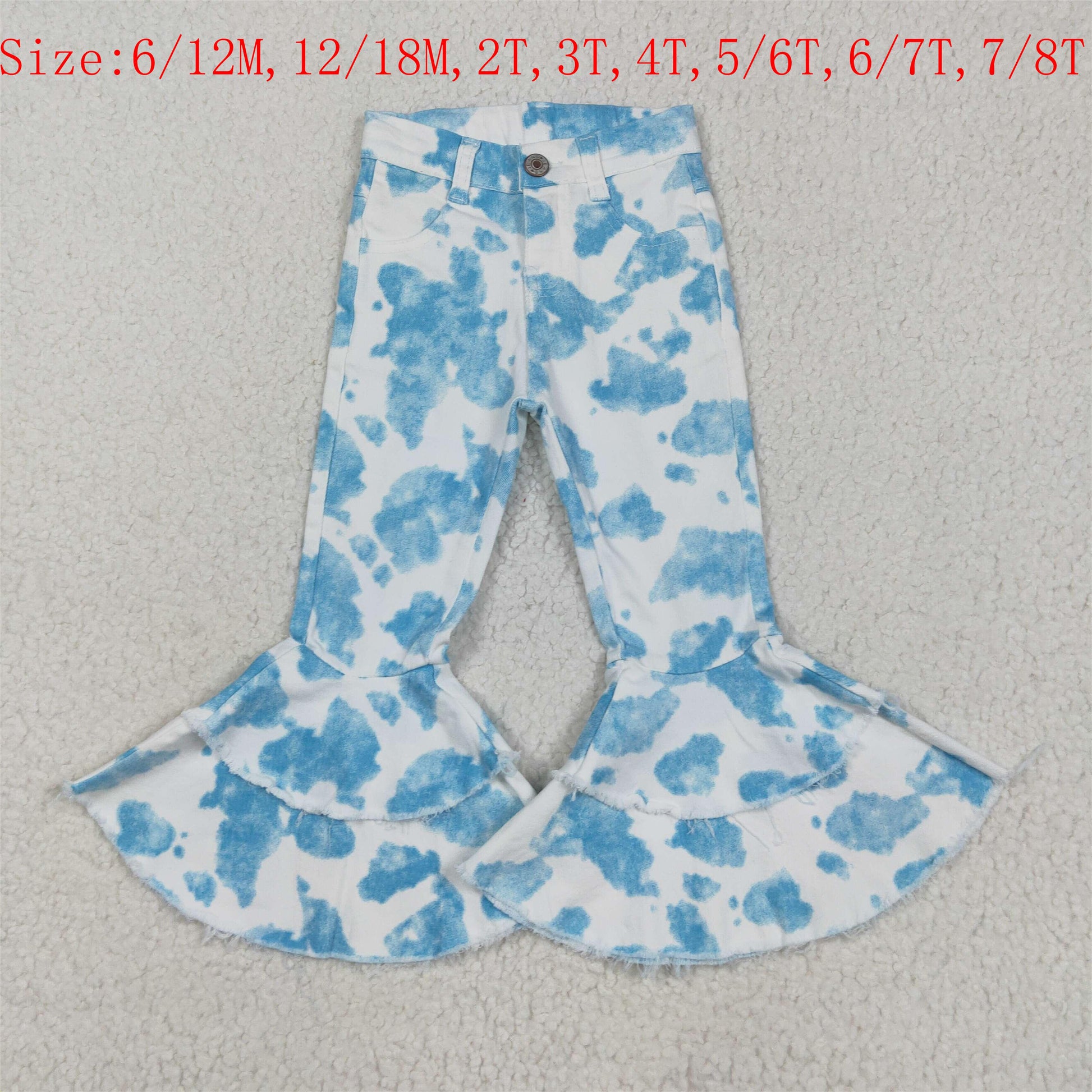 P0762 Blue Tie-dye Denim Bell Bottom Jeans Girls Pants