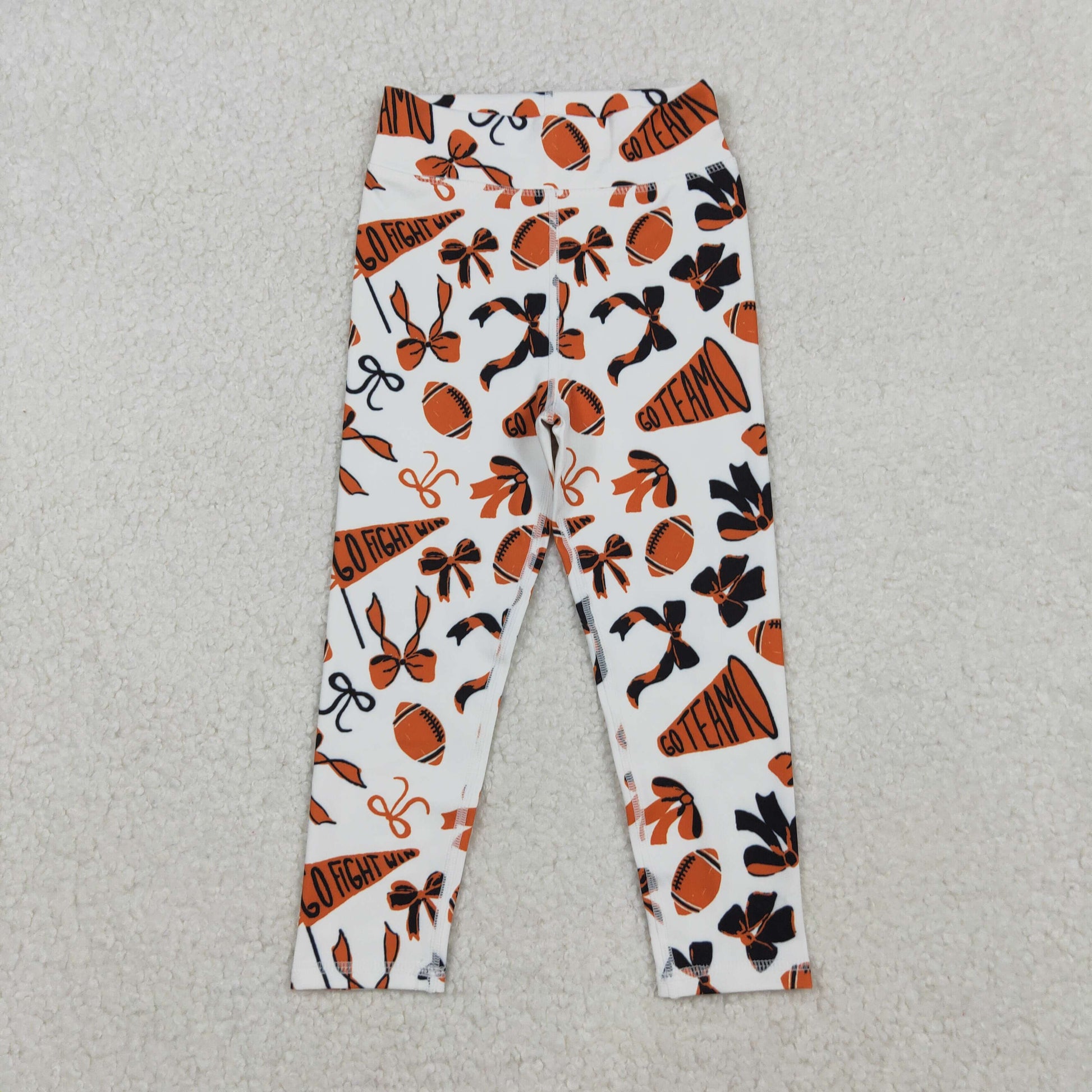 P0847 Go Team Cheer Bows Orange Print Girls Bottom Legging Yoga Pants