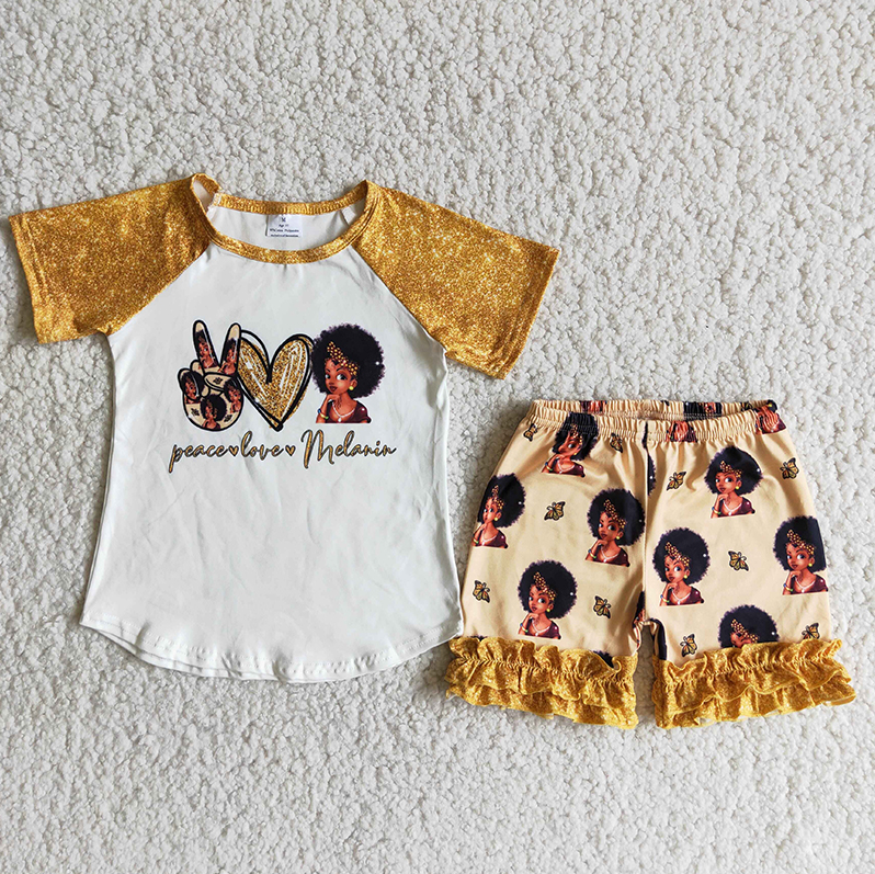 (Promotion)Peace love melanin icing shorts summer outfits D6-14