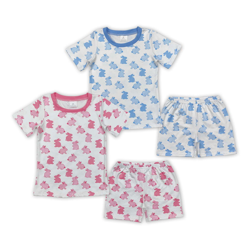 Pink Blue Bunny Print Sibling Easter Matching Clothes