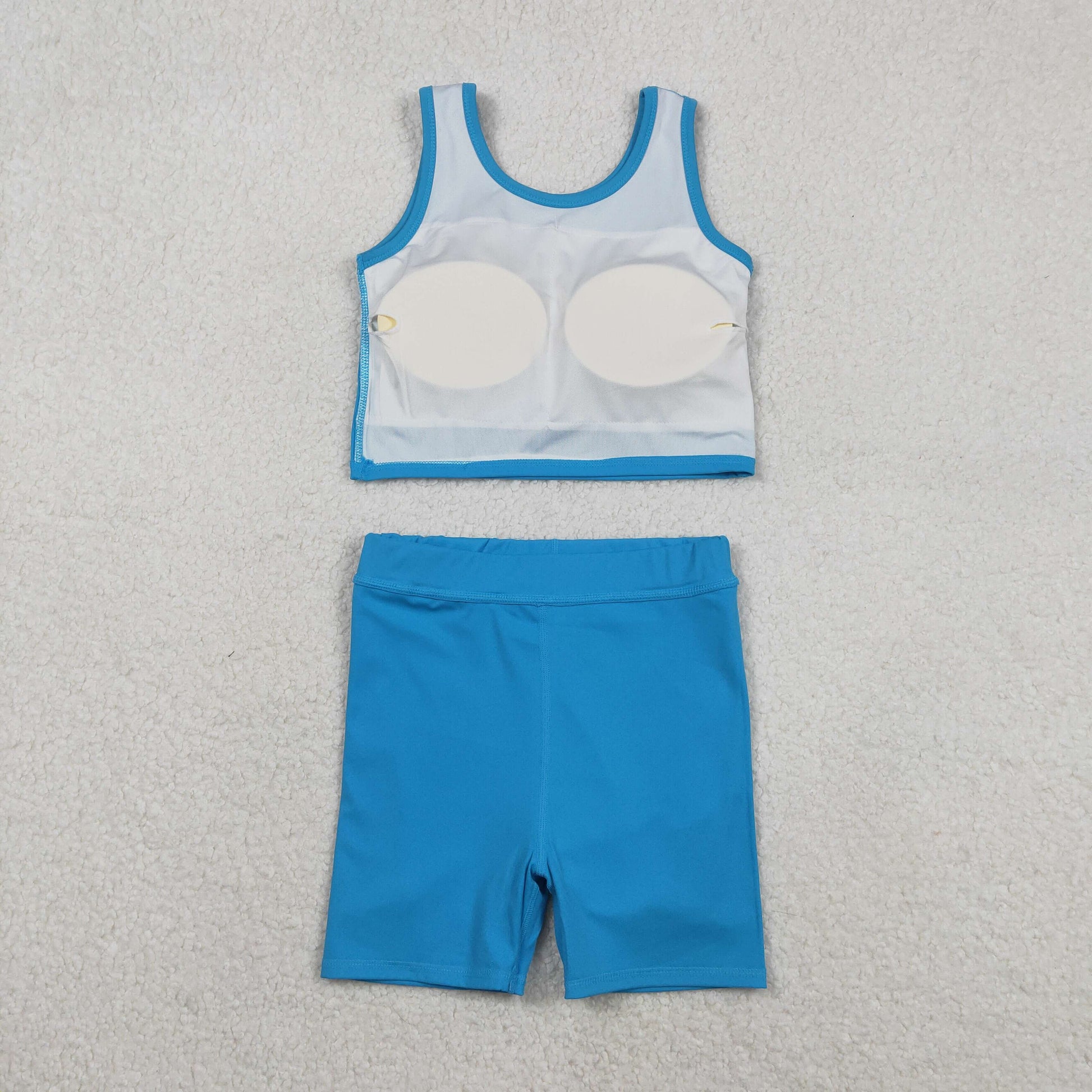 Pink & Blue Tank Top Skirts Shorts Girls Summer Yoga Outfits Sisters Wear