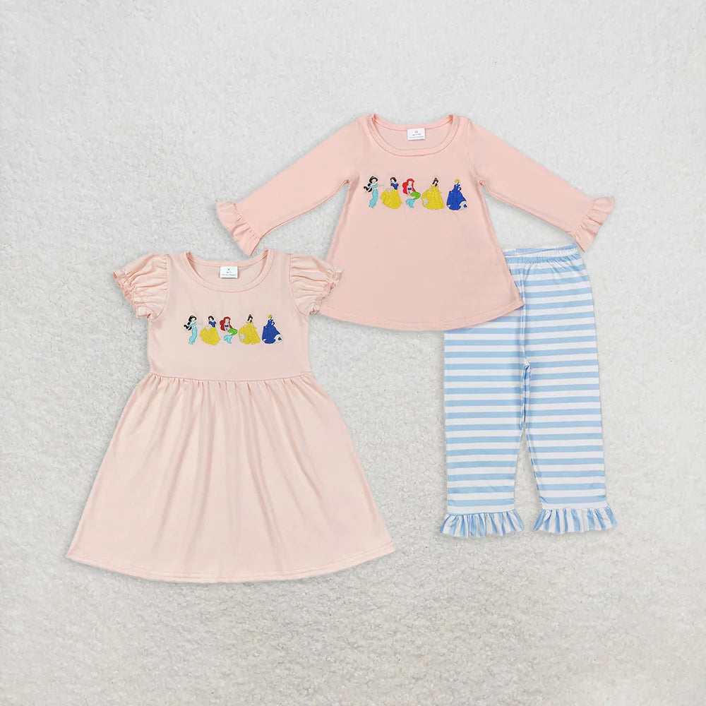 Pink Cartoon Princess Embroidery Girls Clothes Sisters Wear