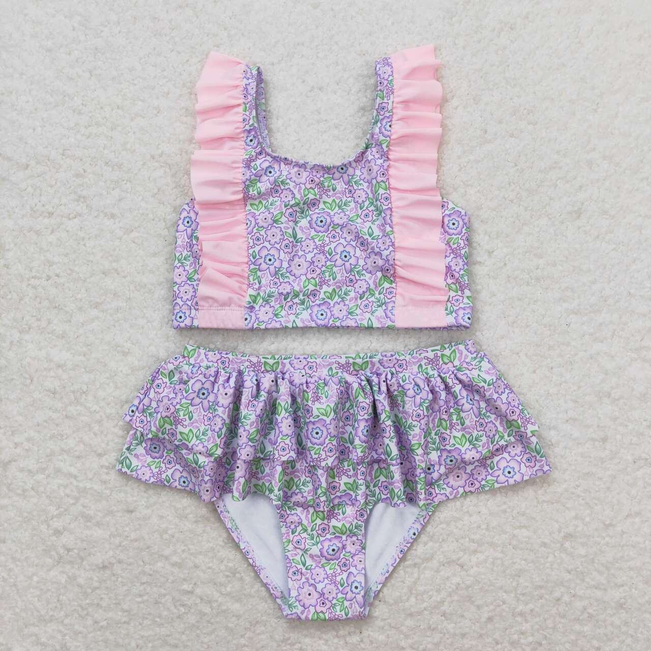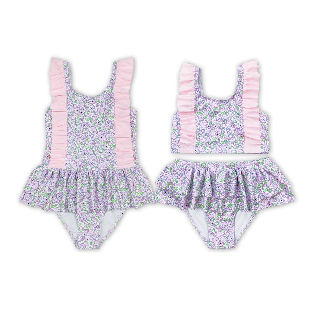 Pink Flowers Print Sister Summer Matching Swimsuits