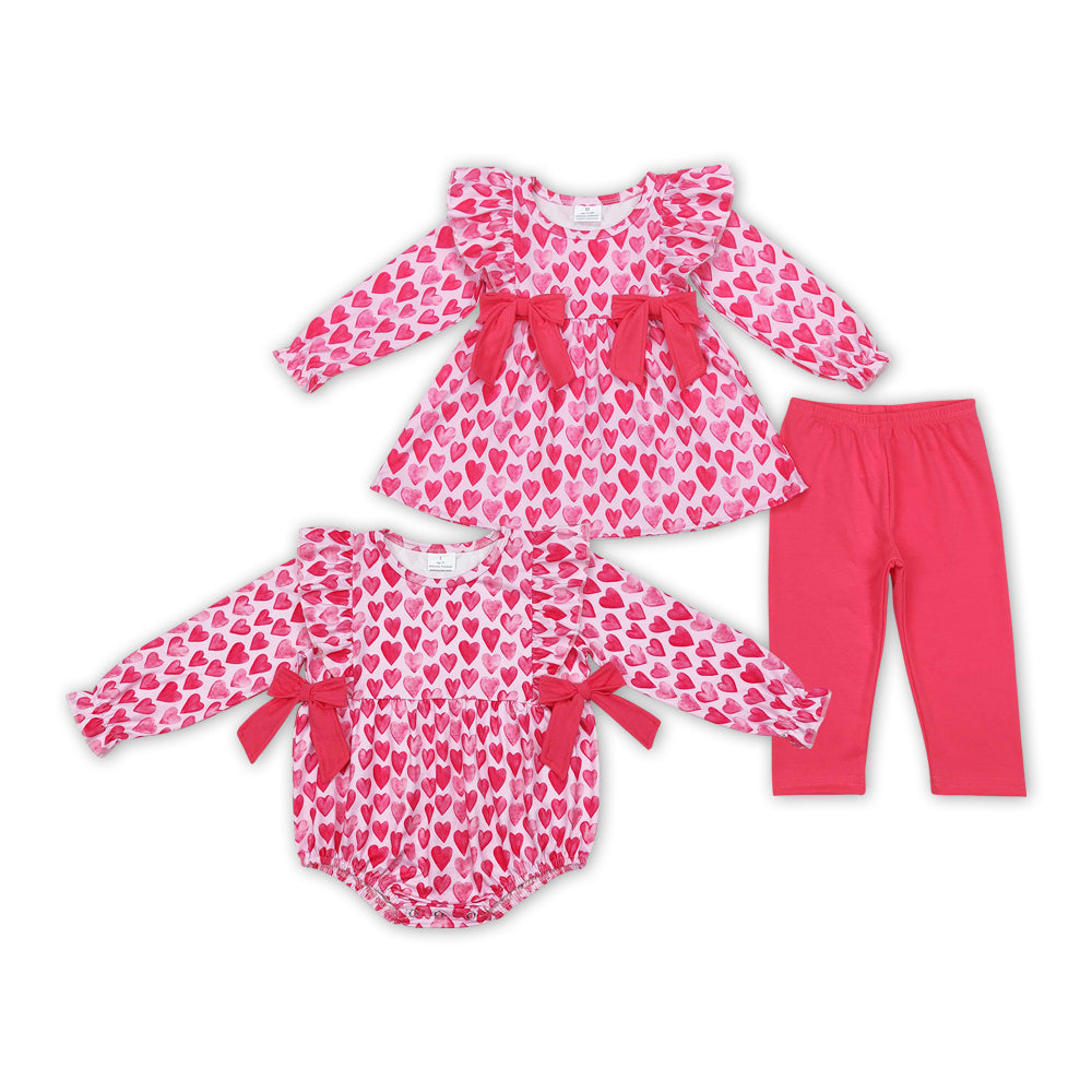 Pink Heart Print Sisters Valentine's Day Matching Clothes