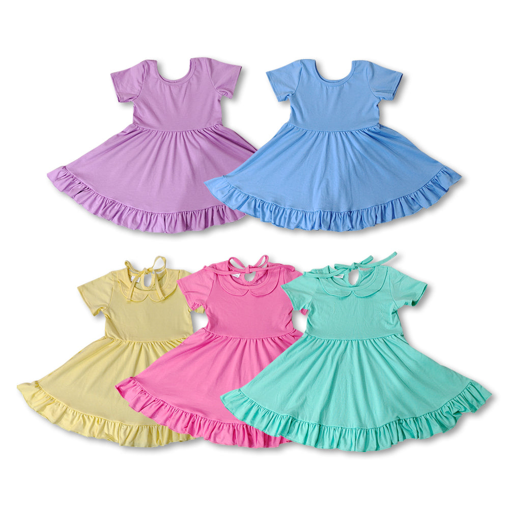 5 Solid Colors Girls Shorts Sleeve Summer Knee Length Dress