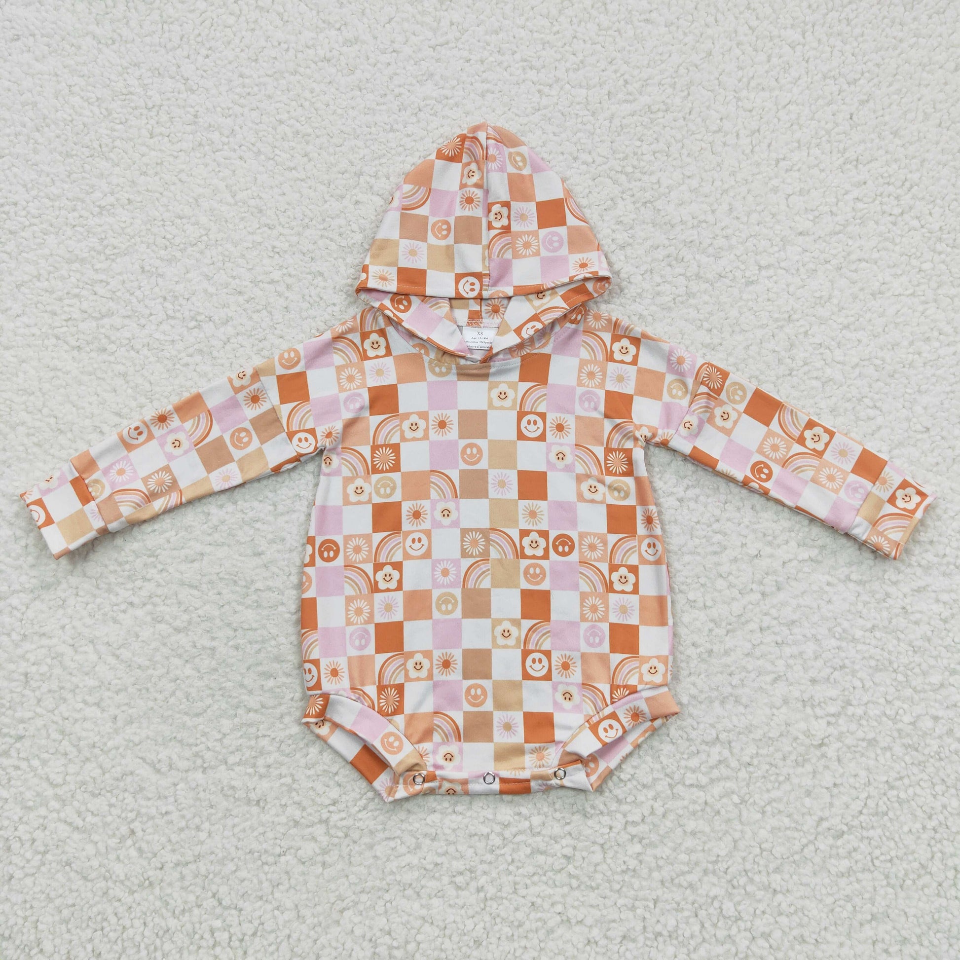 LR0271 Baby orange plaid print long sleeve hoodie romper