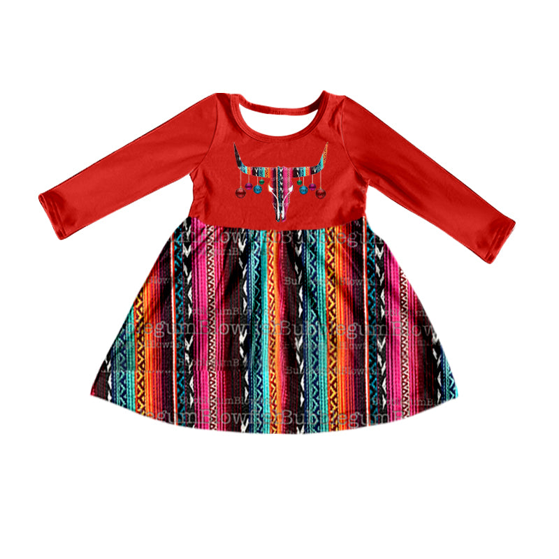 (Pre-order) GLD0400 Colorful Stripes Print Girls Western Knee Length Dress