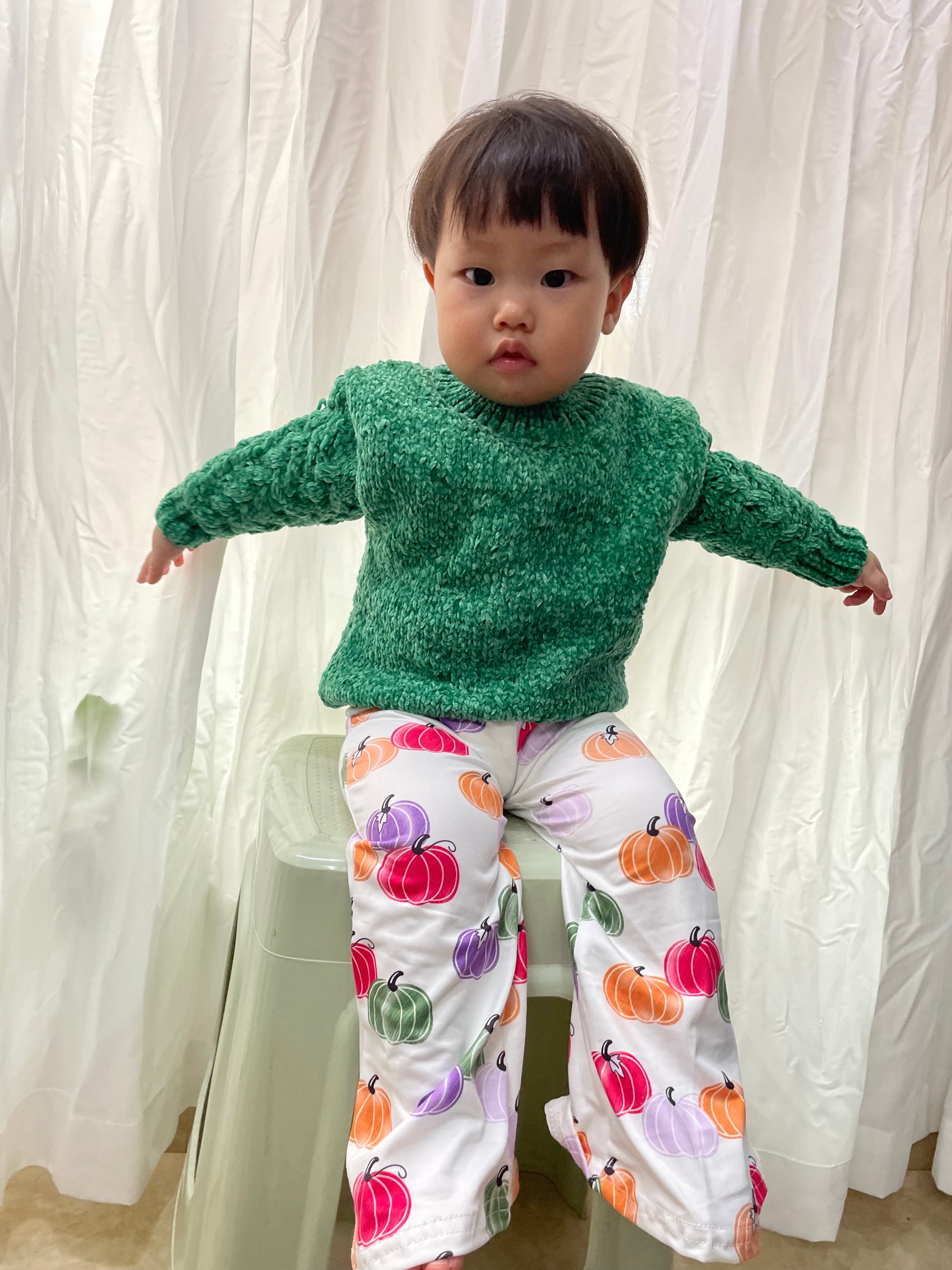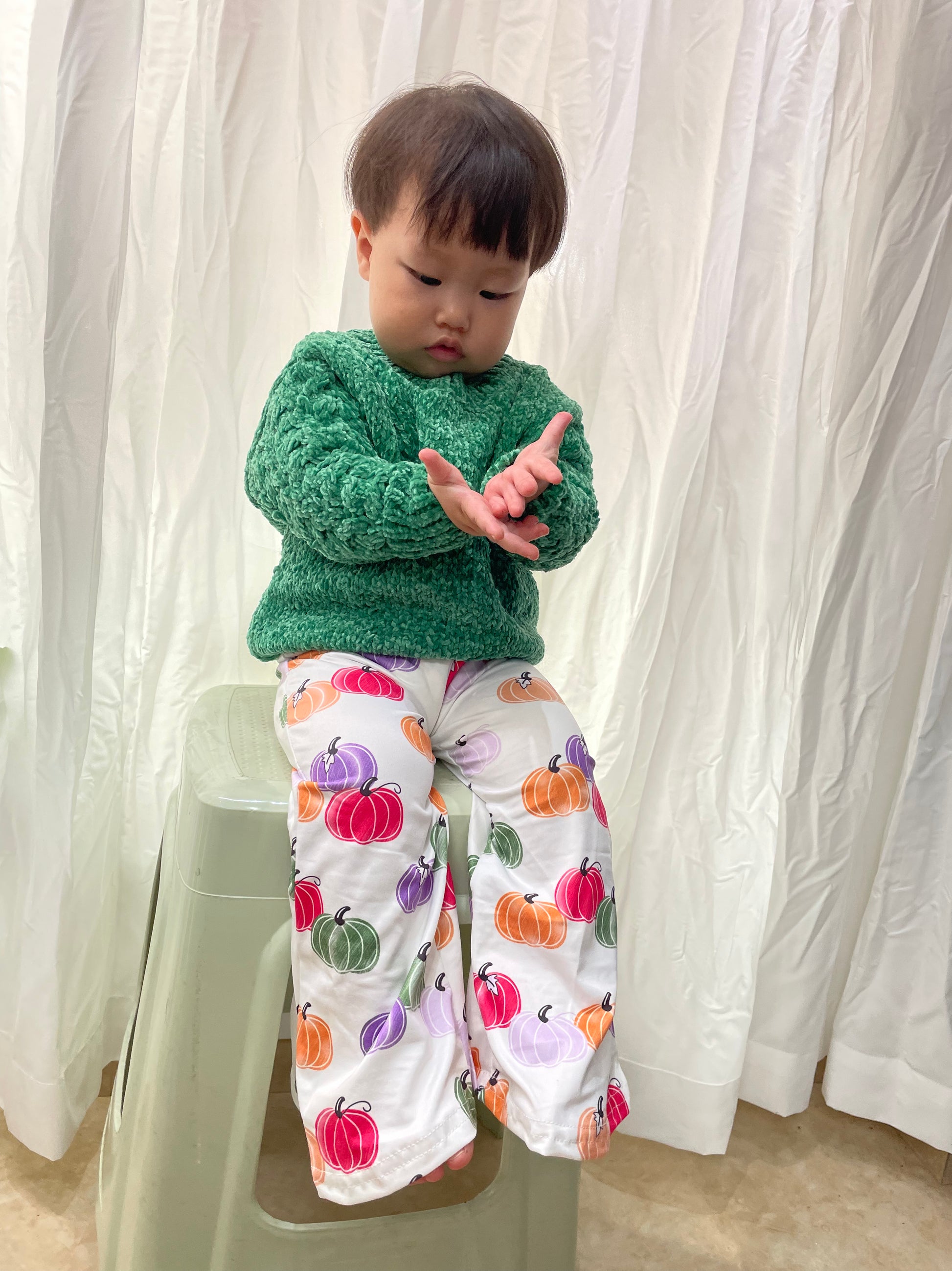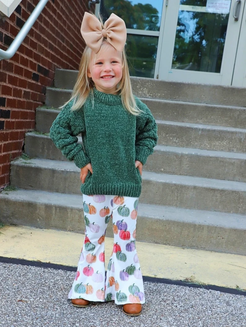 GLP0537 Green sweater top pumpkin bell pants girls clothes sets