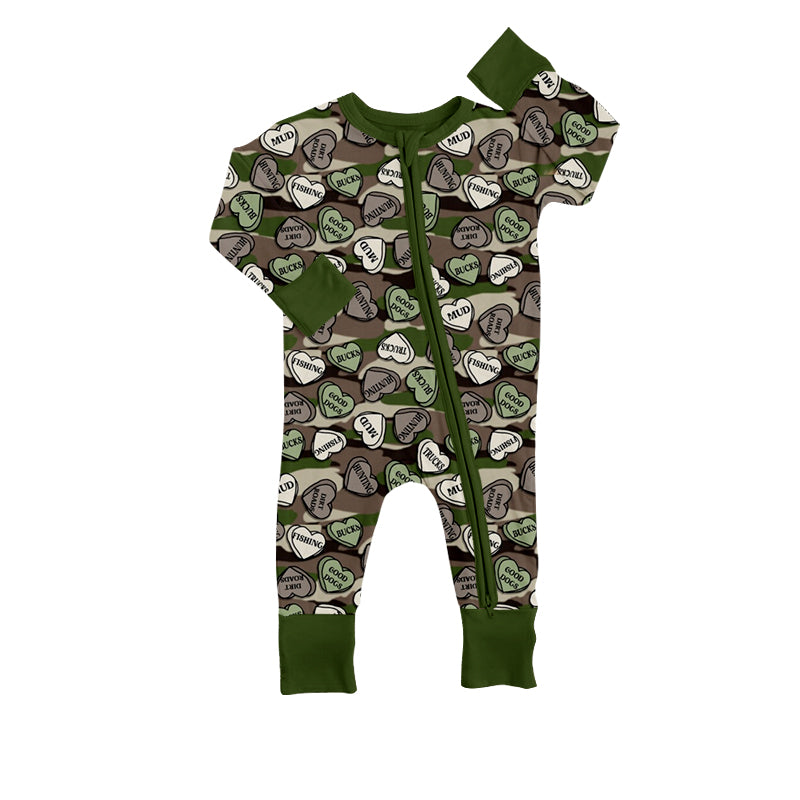 (Pre-order) LR0746 Green Camo Heart Print Baby Zip Romper