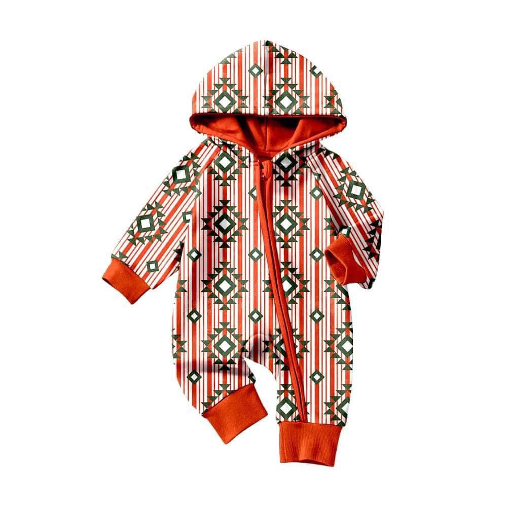 (Pre-order) LR0777 Aztec Print Baby Hoodie Zipper Romper