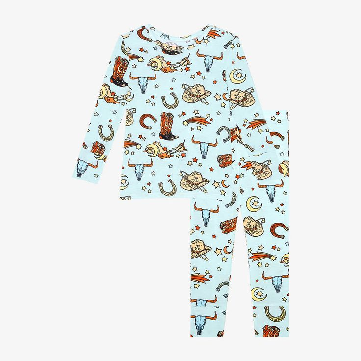 (Pre-order)BLP0370 Blue Cow Skull Boots Hat Boys Pajamas Clothes Set