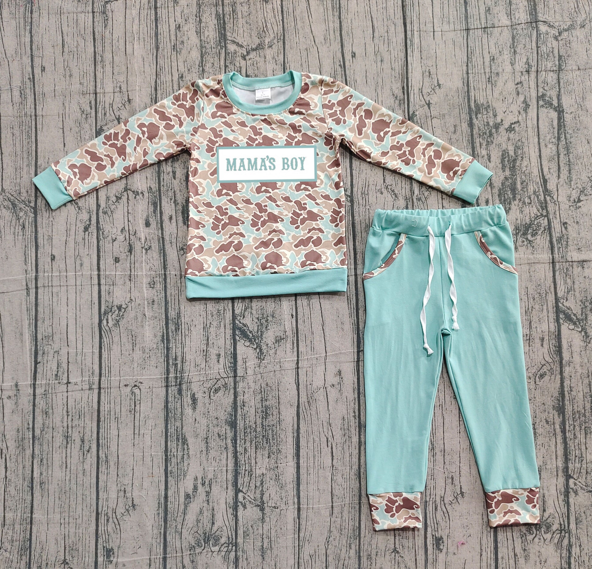 (Pre-order)BLP1336 MAMA'S BOY Brown Blue Camo Top Pockets Pants Boys Clothes Set