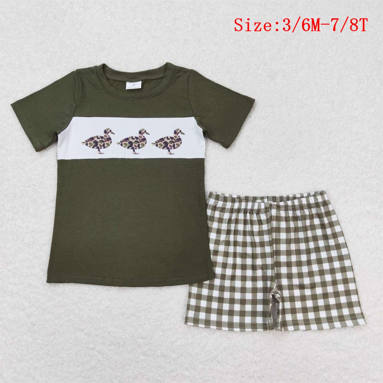 BSSO0663 Green Camo Duck Top Plaid Shorts Boys Summer Clothes Set