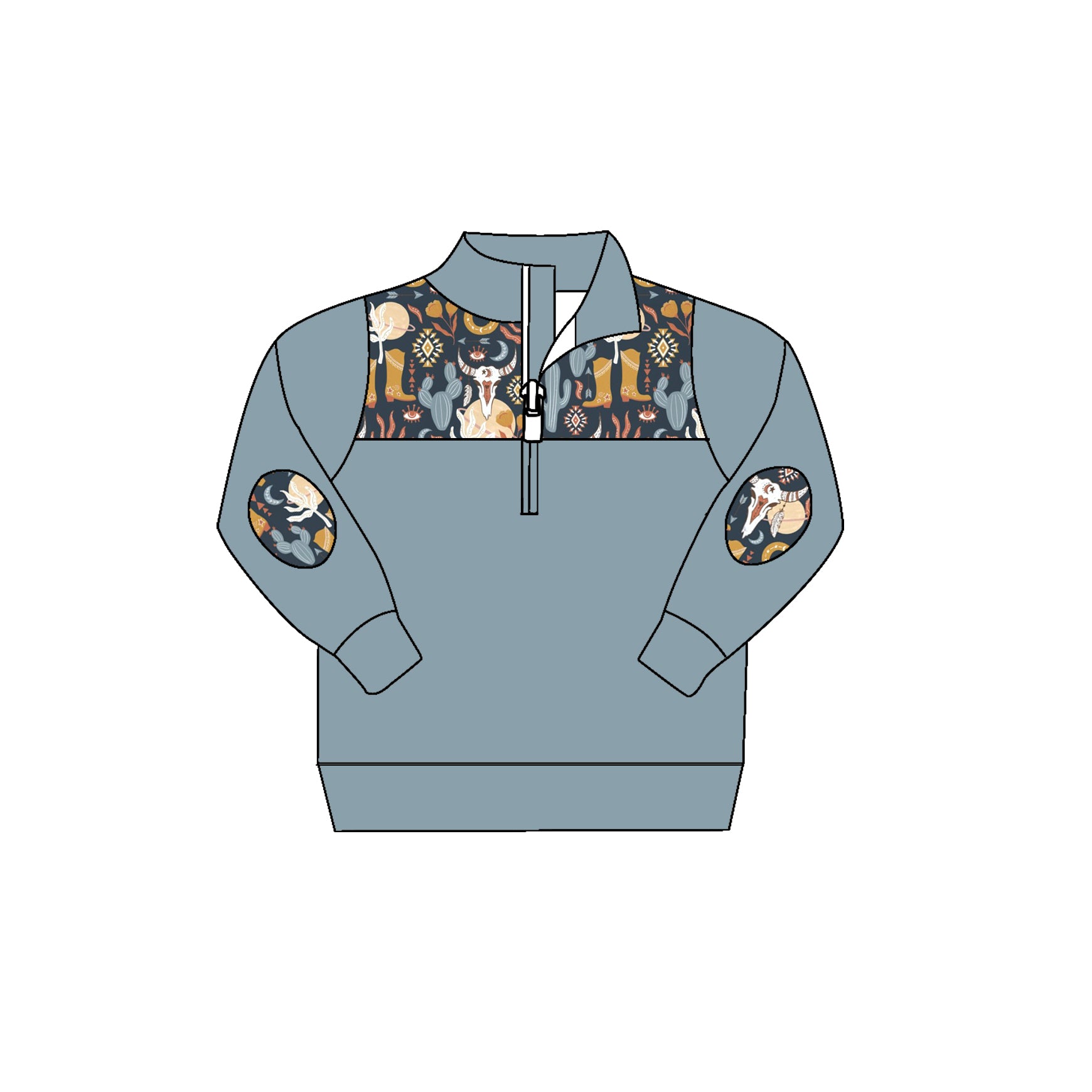 (Pre-order)BT0397 Grey Western Print Boys Zipper Tee Shirt Top