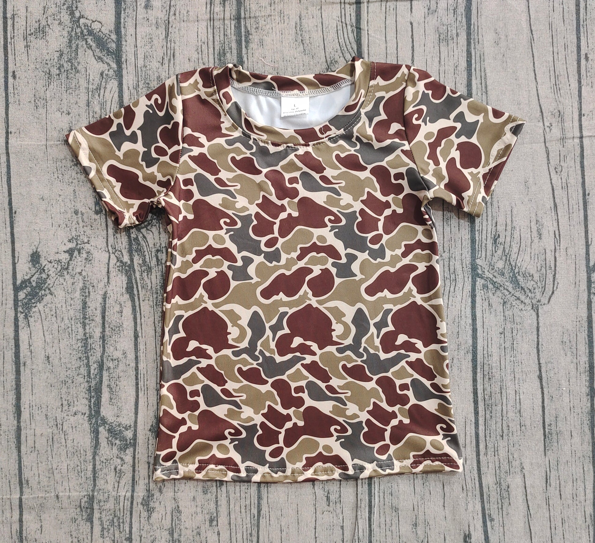 (Pre-order)BT1648 Dark Camo Brown Print Boys Summer Tee Shirts Top