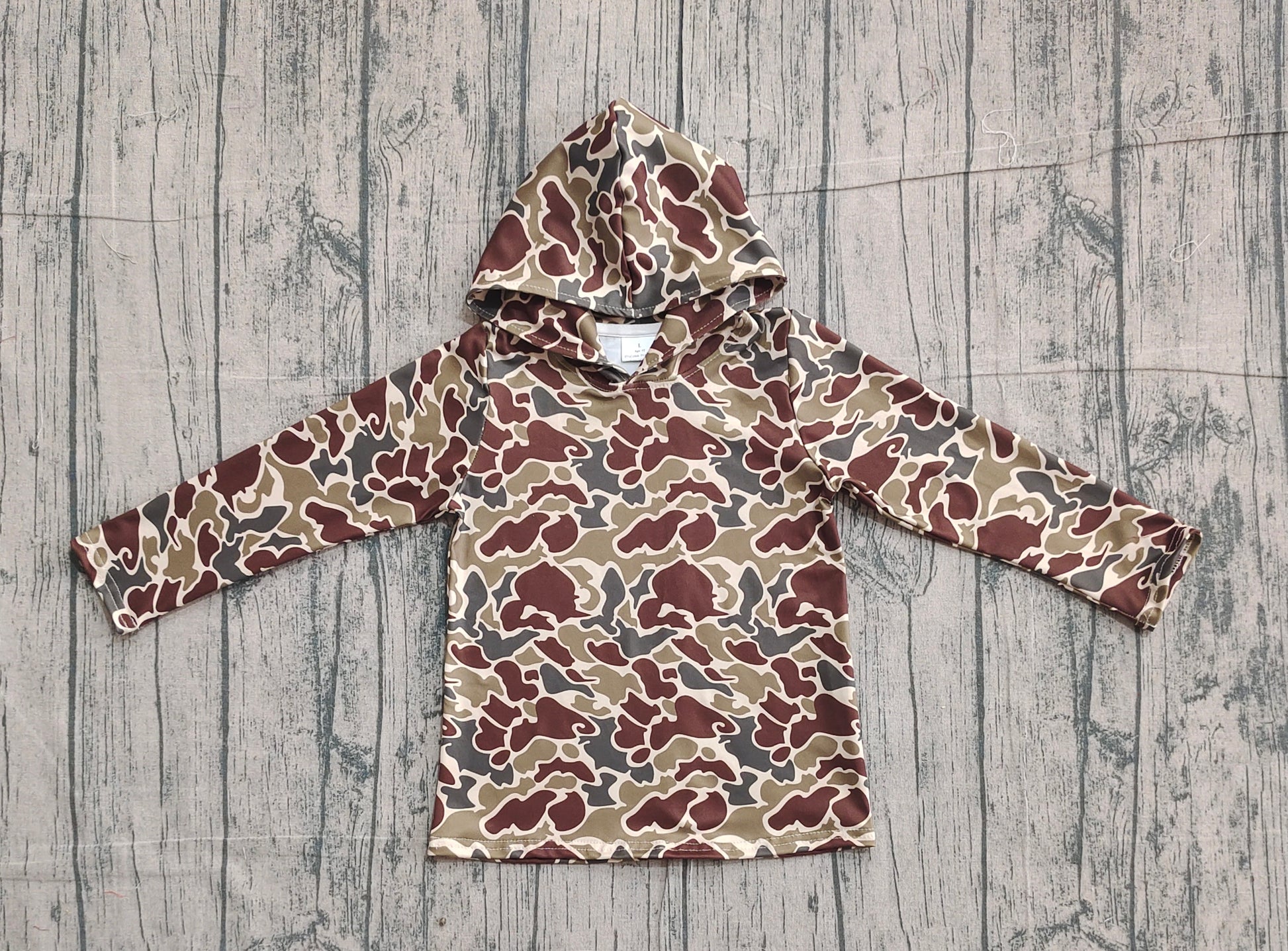 (Pre-order)BT1650 Dark Camo Brown Print Boys Hoodie Top