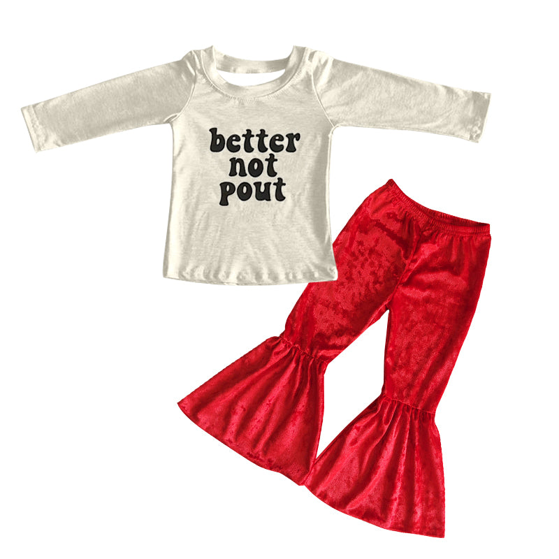 (Pre-order)GLP0863 Better Not Pout Top Red Velvet Bell Pants Girls Clothes Set