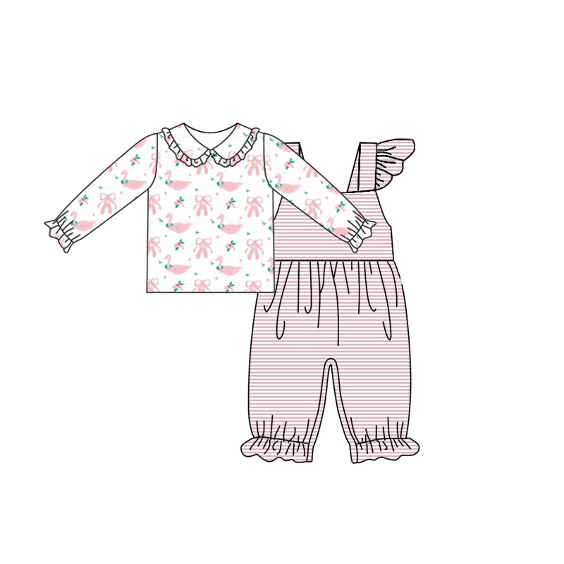 (Pre-order)GLP0881 Pink Swan Dancing Shoes Print Overall Girls Jumpsuit Clothes Set