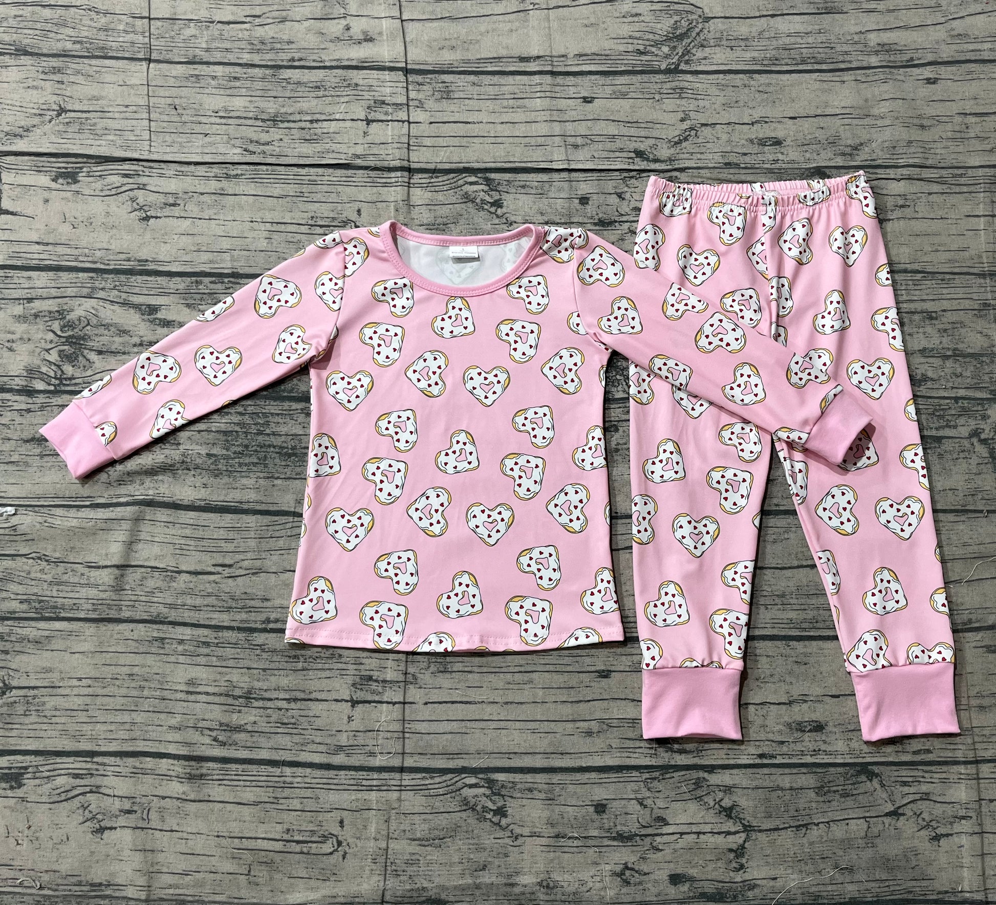(Pre-order)GLP3245 Heart Donuts Pink Print Girls Valentine's Day Pajamas Clothes Set