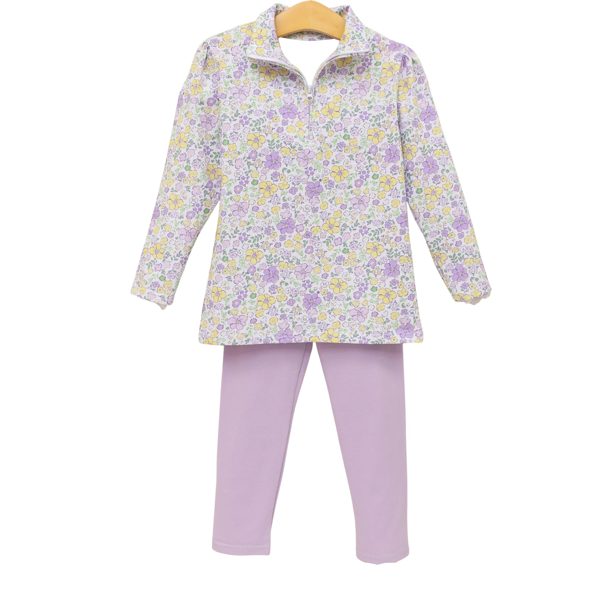 (Pre-order)GLP3266 Yellow Purple Flowers Zipper Top Legging Pants Girls Yoga Clothes Set