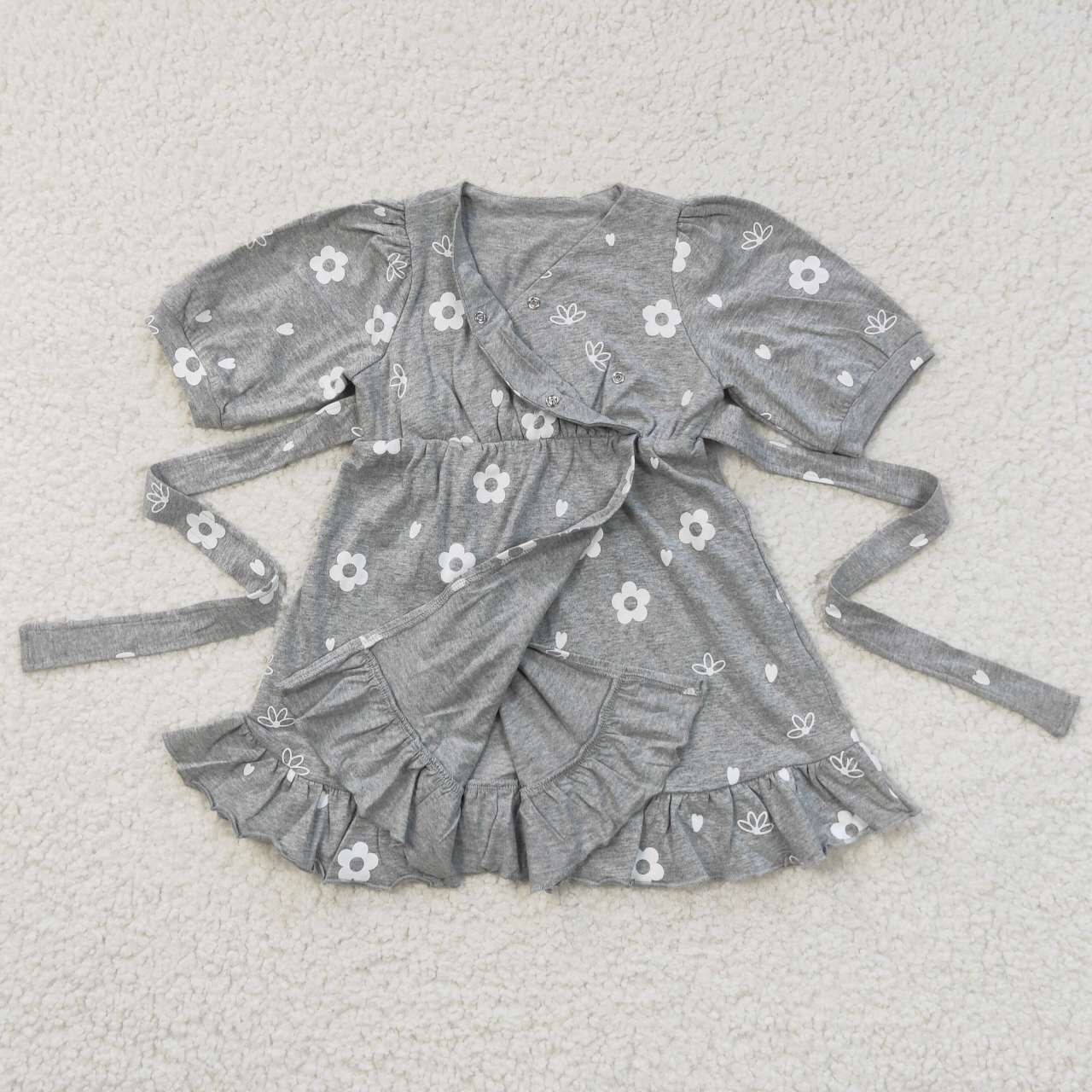 GSD0447 Grey flowers print cotton knee length dress