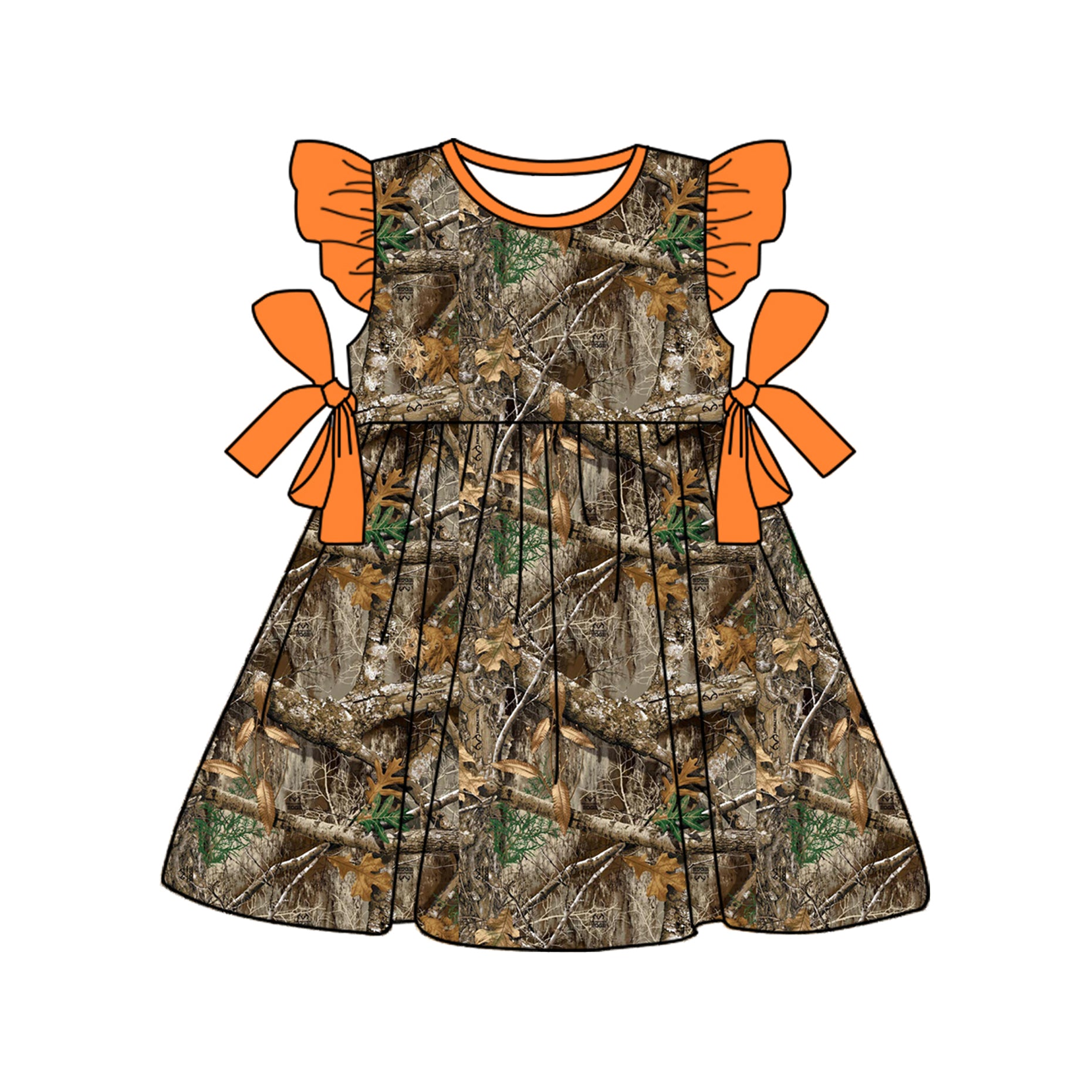 (Pre-order)GSD1567 Branch Camo Print Girls Summer Knee Length Dress