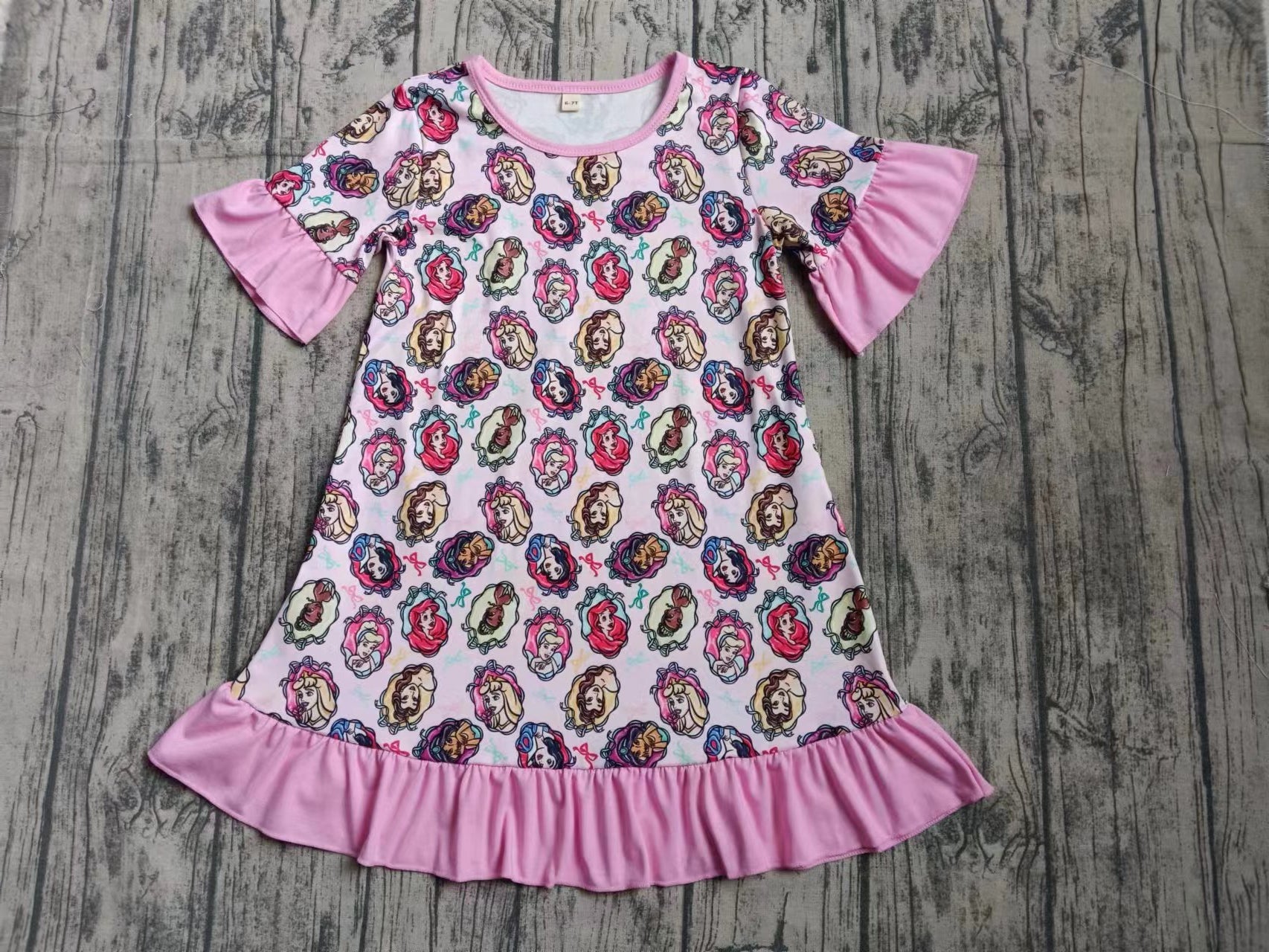 (Custom Design Preorder MOQ 5) Cartoon Princess Print Girls Summer Knee Length Dress
