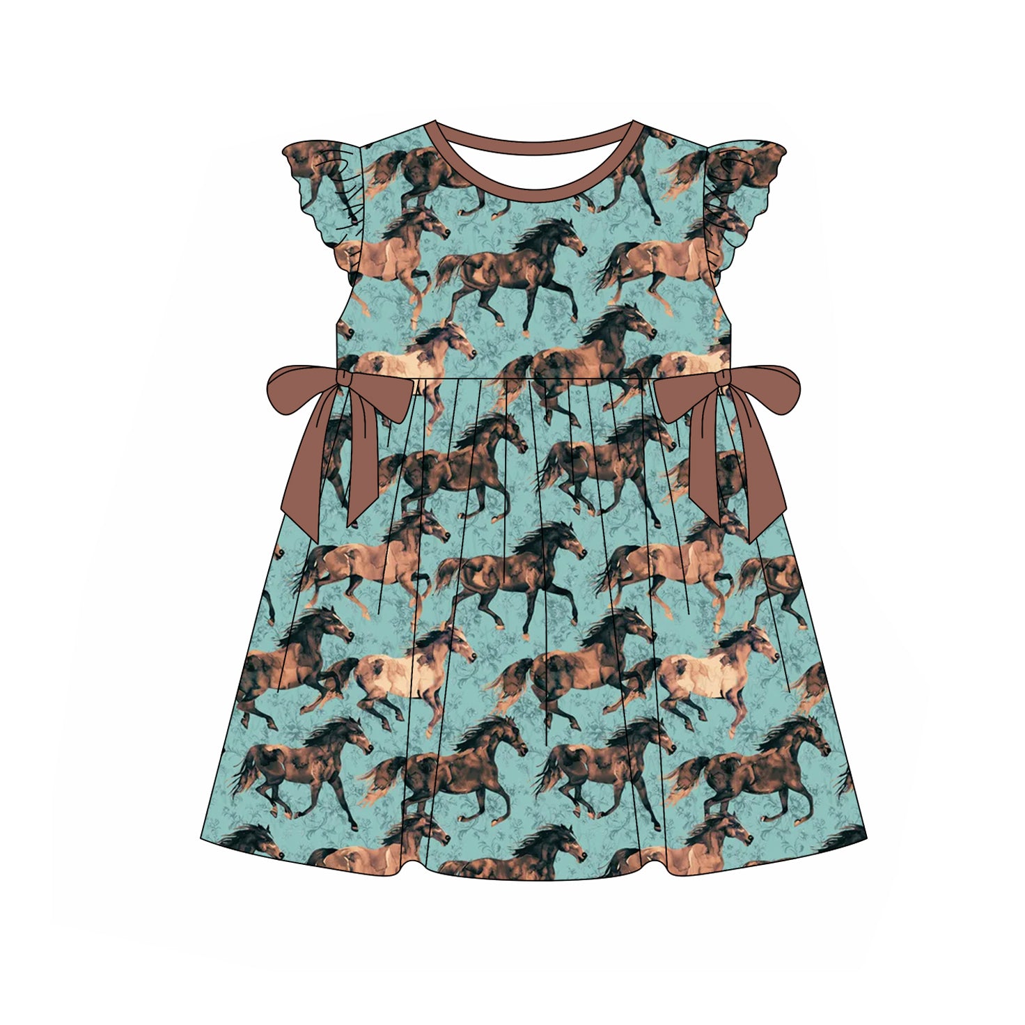 (Pre-order)GSD2004 Horse Print Girls Summer Knee Length Dress