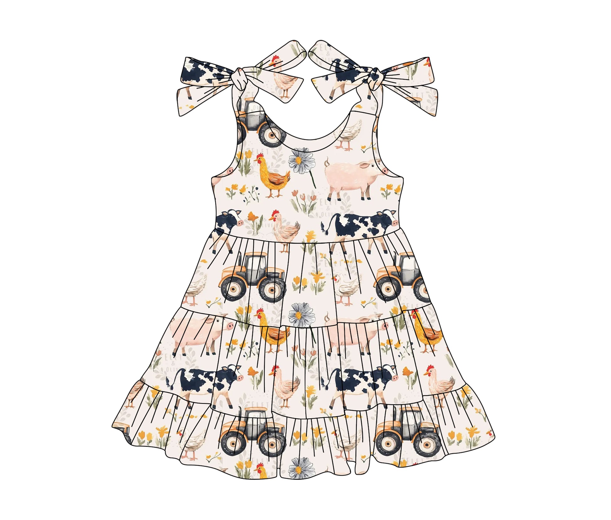 (Pre-order)GSD2237 Farm Animals Flowers Print Girls Summer Knee Length Dress
