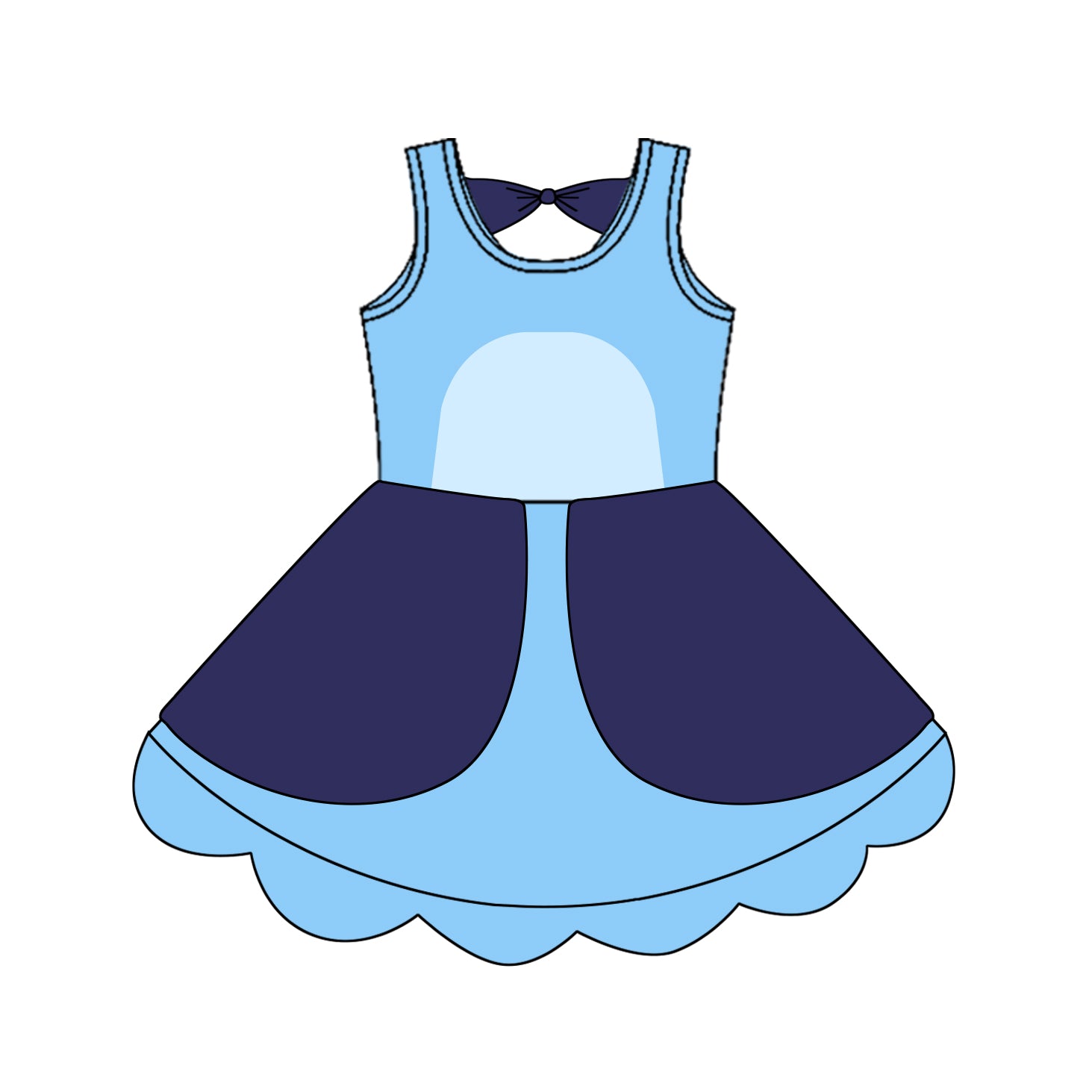 (Pre-order)GSD2515 Cartoon Dog Blue Print Girls Summer Knee Length Dress