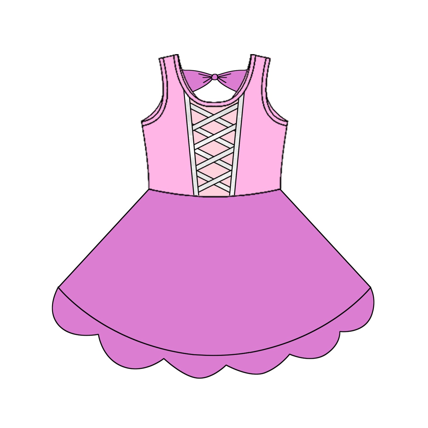 (Pre-order)GSD2518 Cartoon Princess Pink Print Girls Summer Knee Length Dress