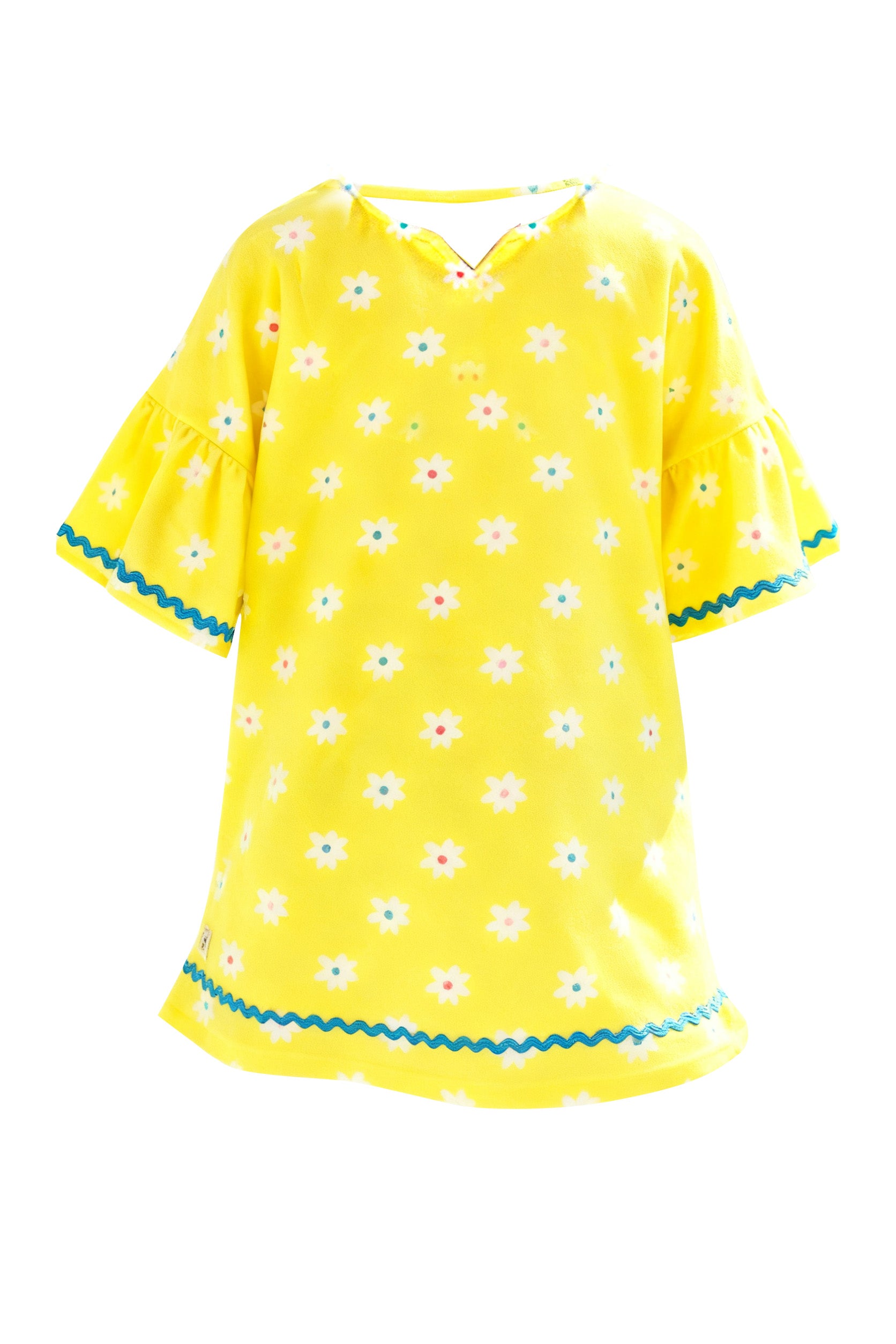 (Pre-order)GSD3055 Yellow Flowers Print Girls Summer Knee Length Dress
