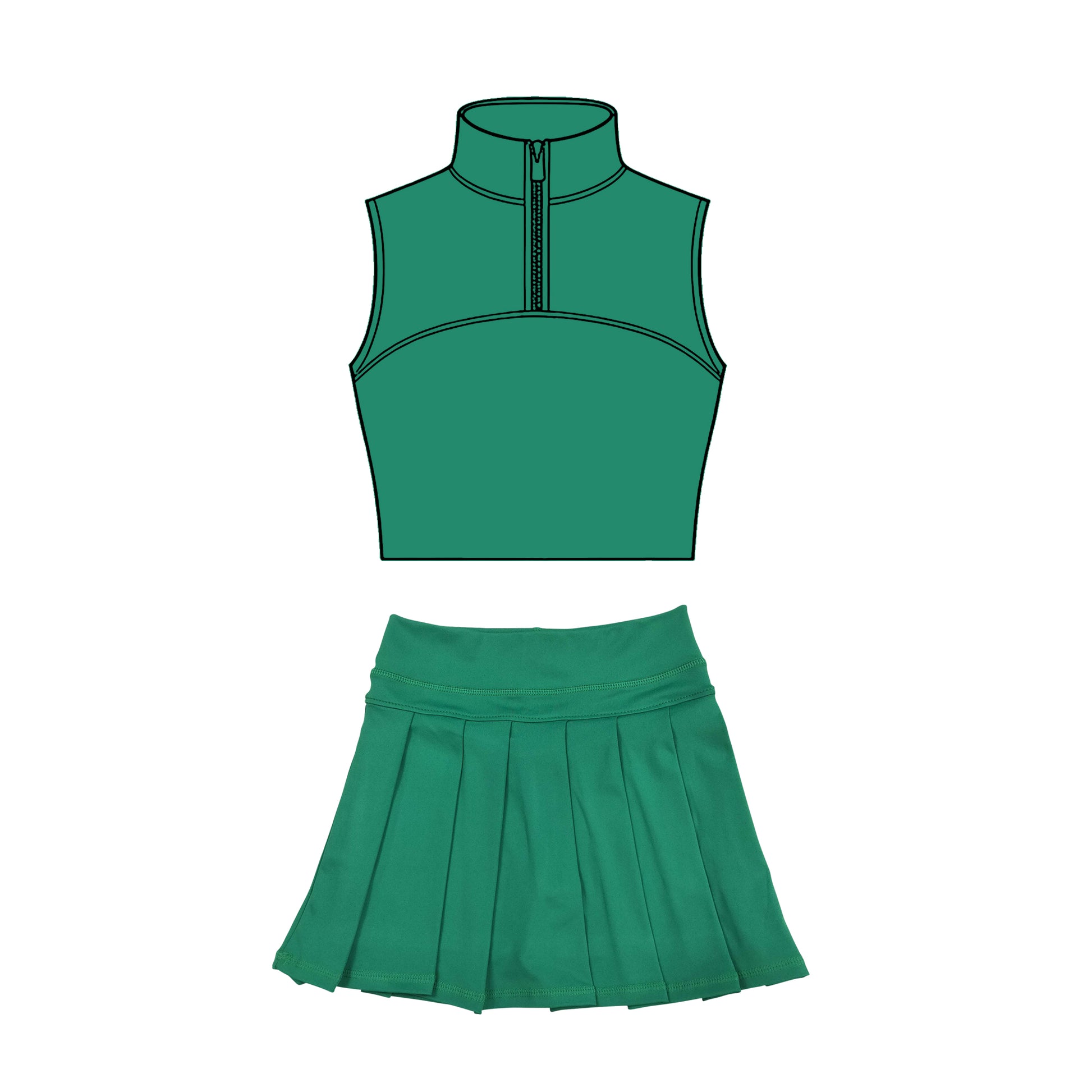 (Pre-order)GSD3302 Green Color Zipper Top Skirts Girls Summer Yoga Clothes Set