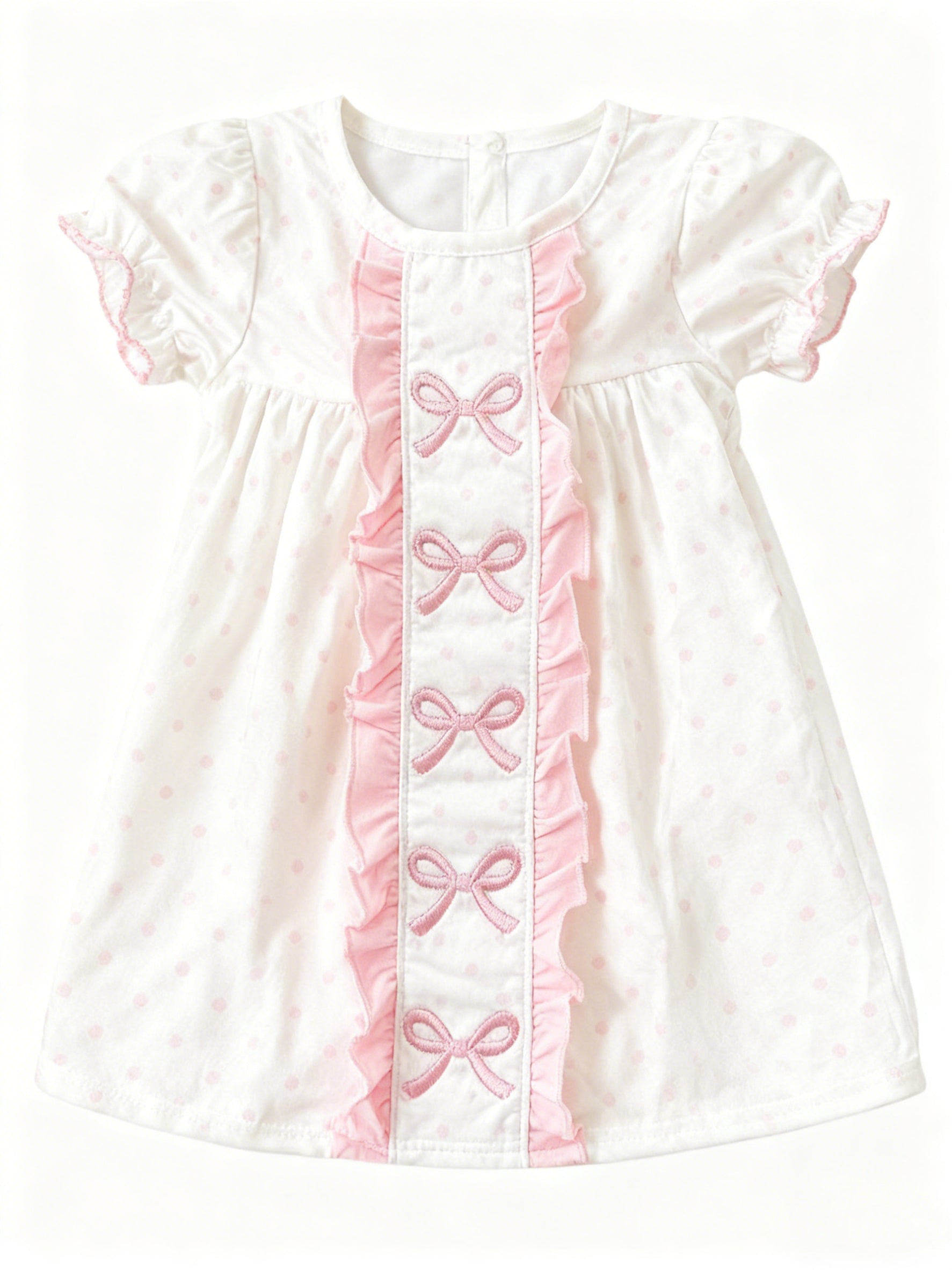 (Pre-order)GSD3312 Pink Bows Dots Print Girls Easter Knee Length Dress