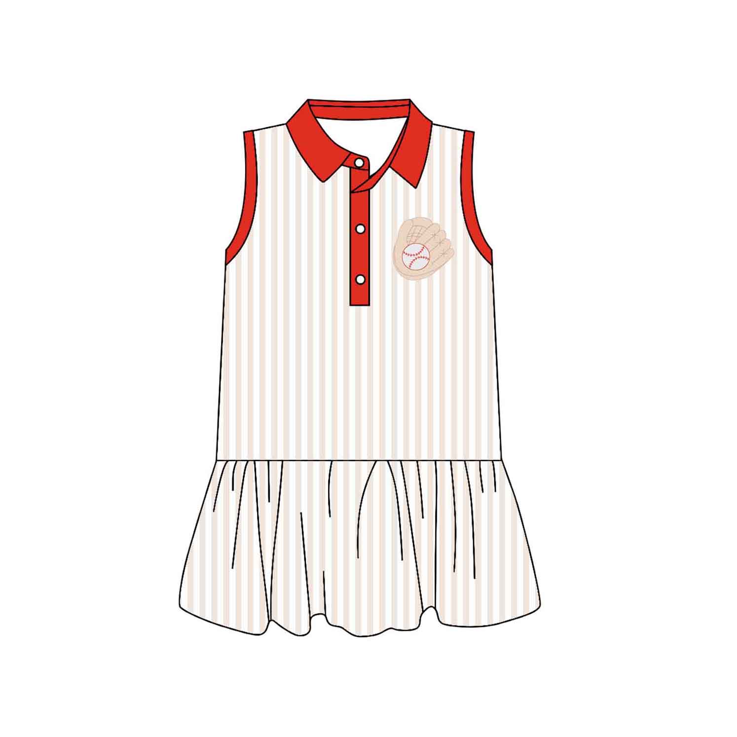 (Pre-order)GSD3385 Baseball Stripes Print Girls Summer Knee Length Dress