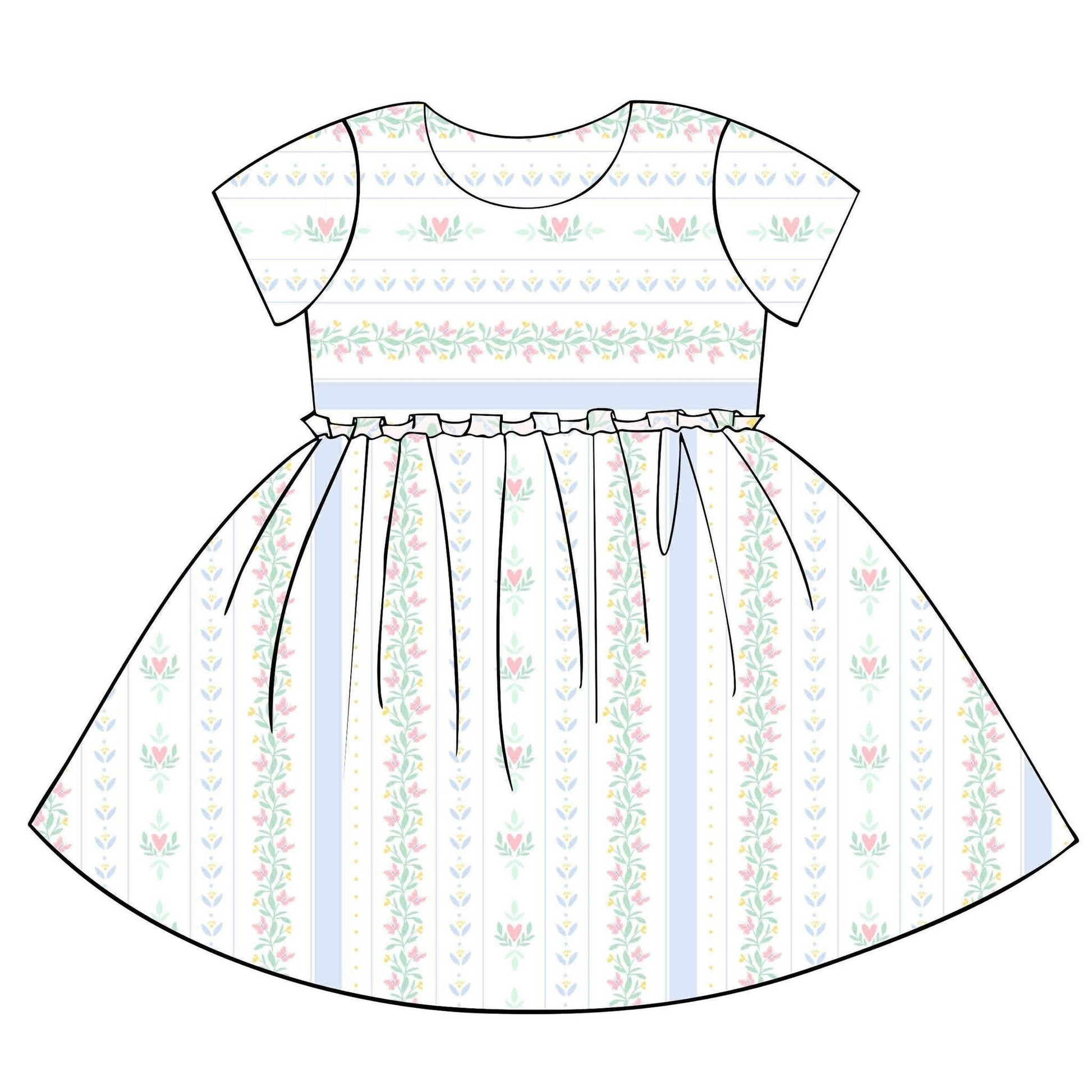 (Pre-order)GSD3400 Small Flowers Print Girls Summer Knee Length Dress