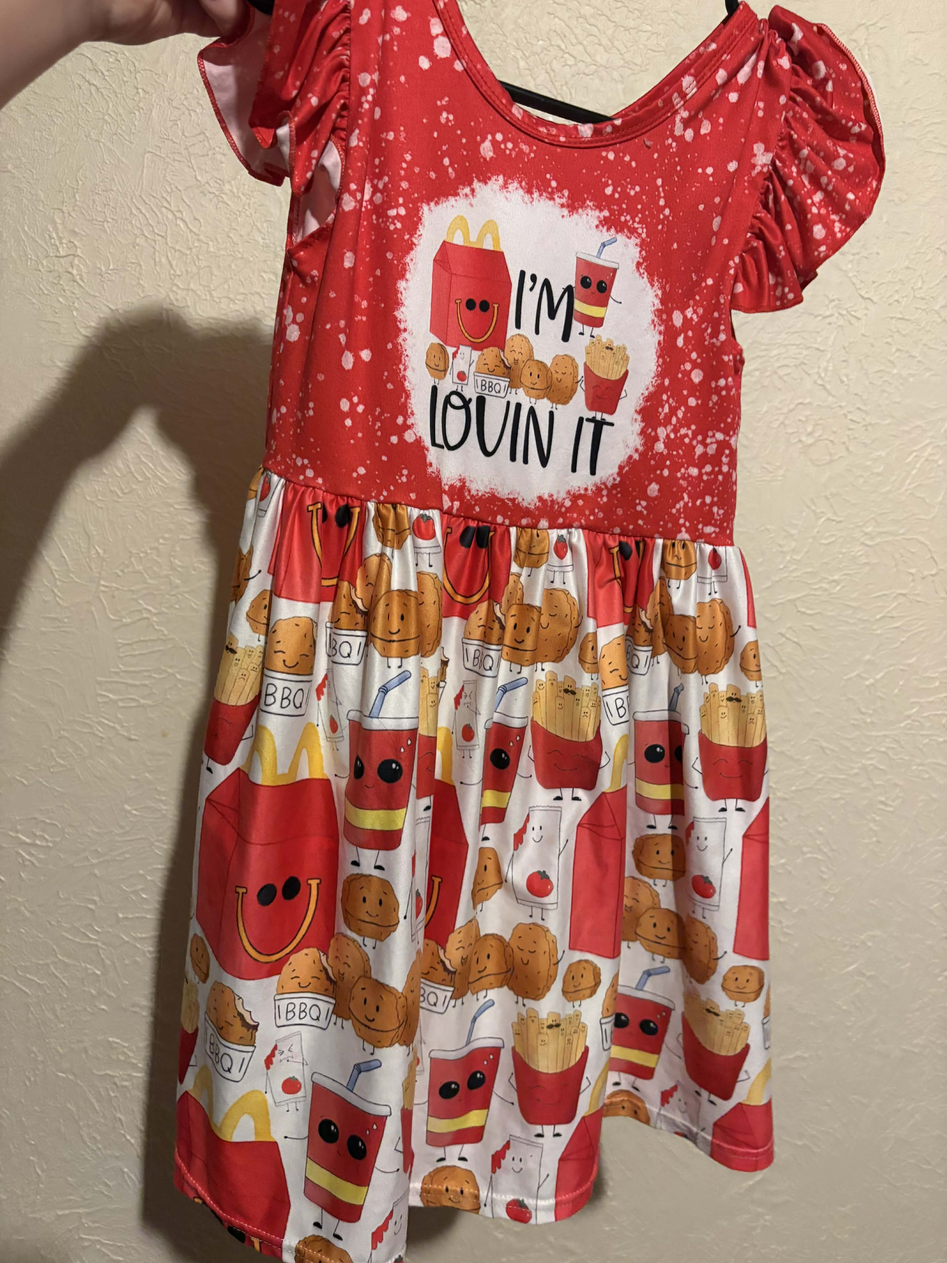(Pre-order)GSD3561 I'm Lovin It Red Print Girls Summer Knee Length Dress