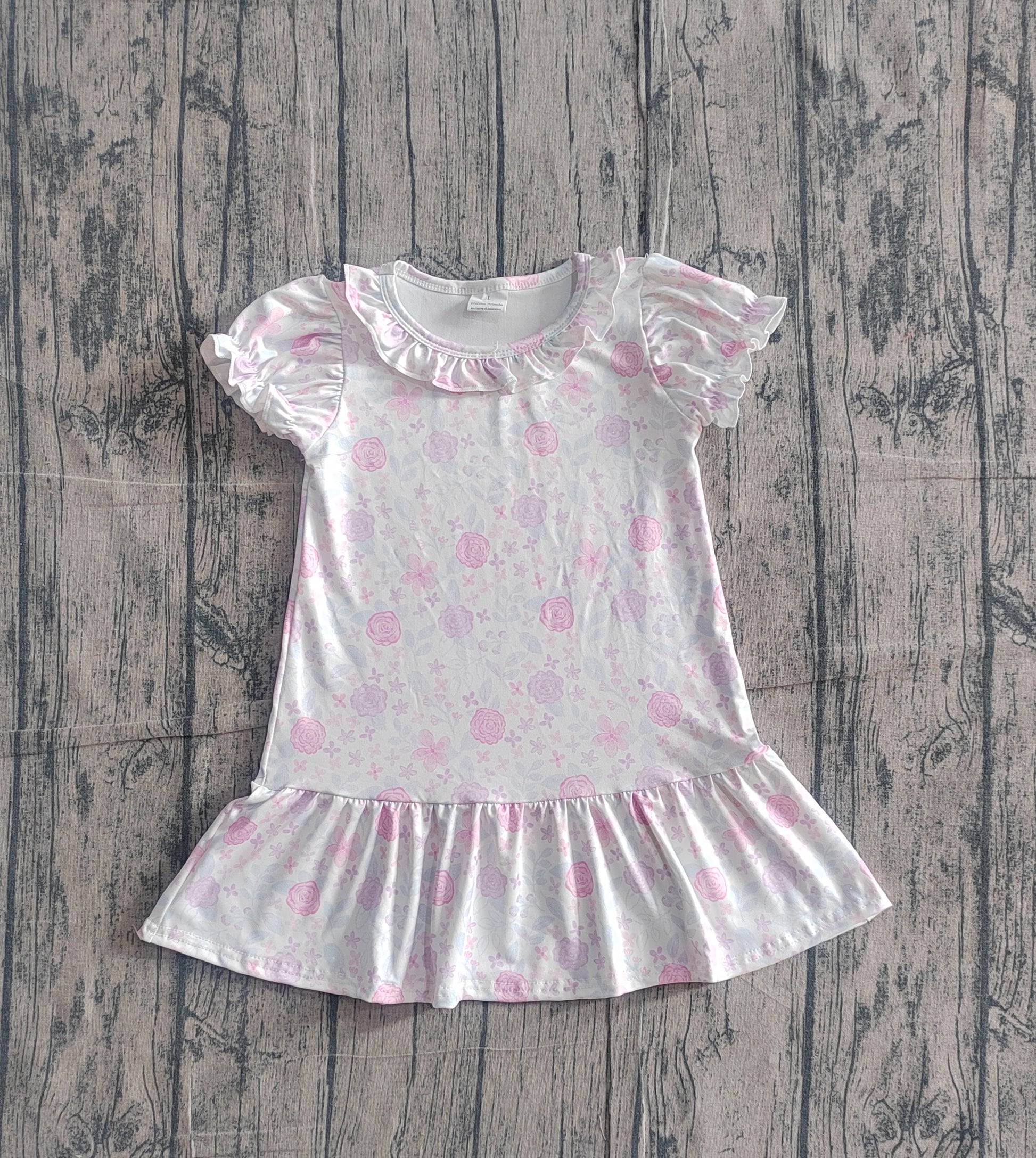 (Pre-order)GSD3717 Flowers Print Girls Summer Knee Length Dress