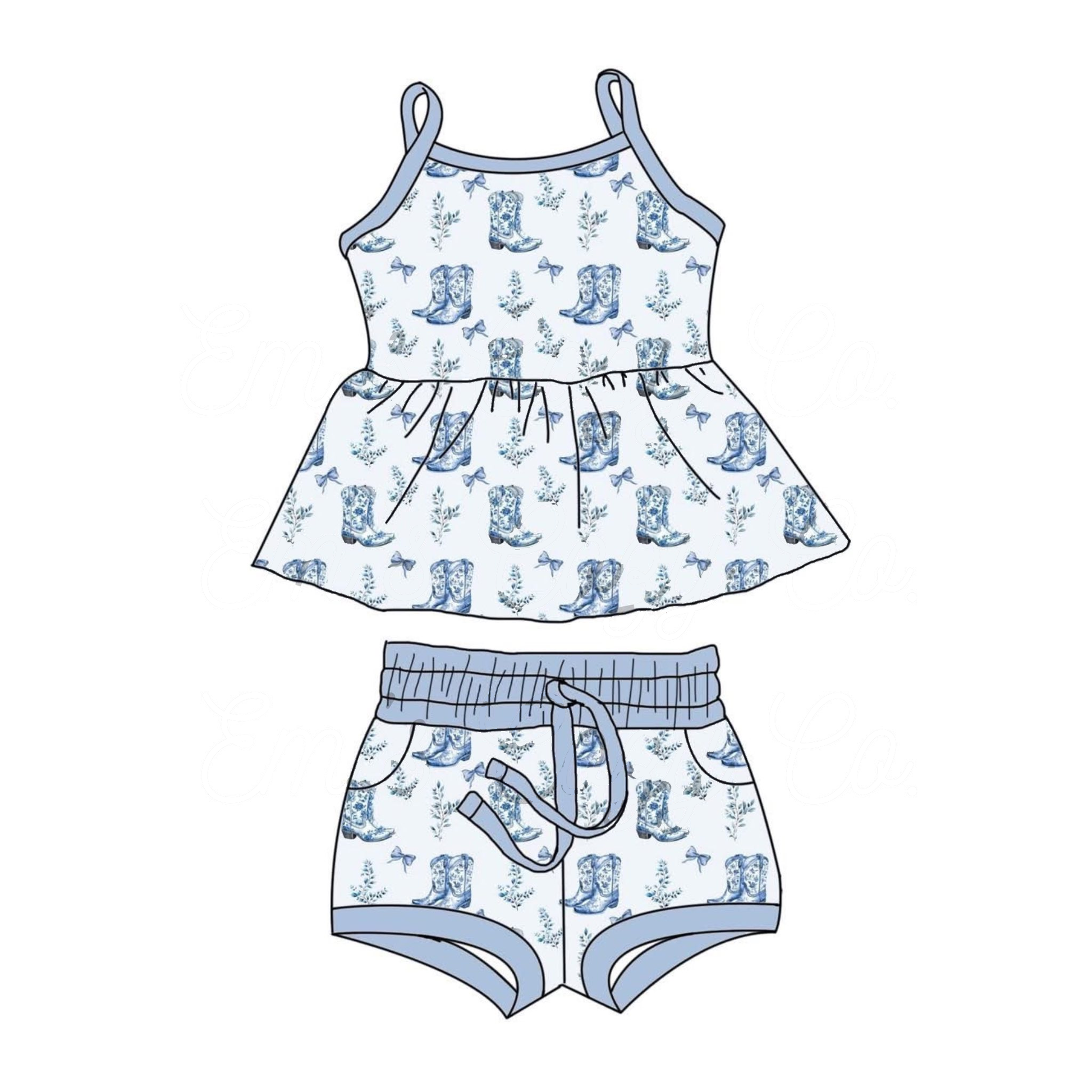 (Pre-order)GSSO2750 Boots Flowers Bows Print Shorts Girls Summer Western Clothes Set