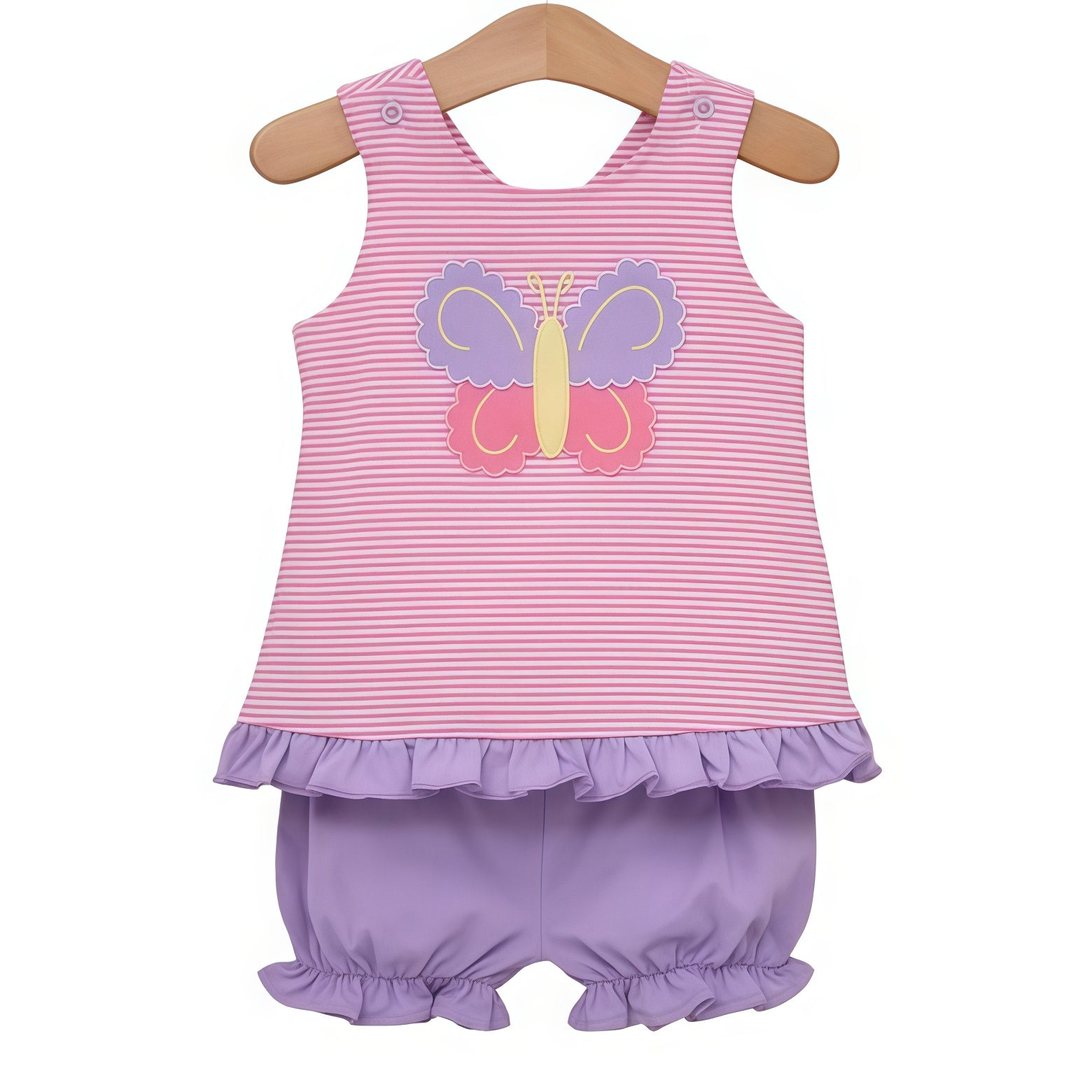 (Pre-order)GSSO3138 Butterfly Stripes Top Purple Shorts Girls Summer Clothes Set