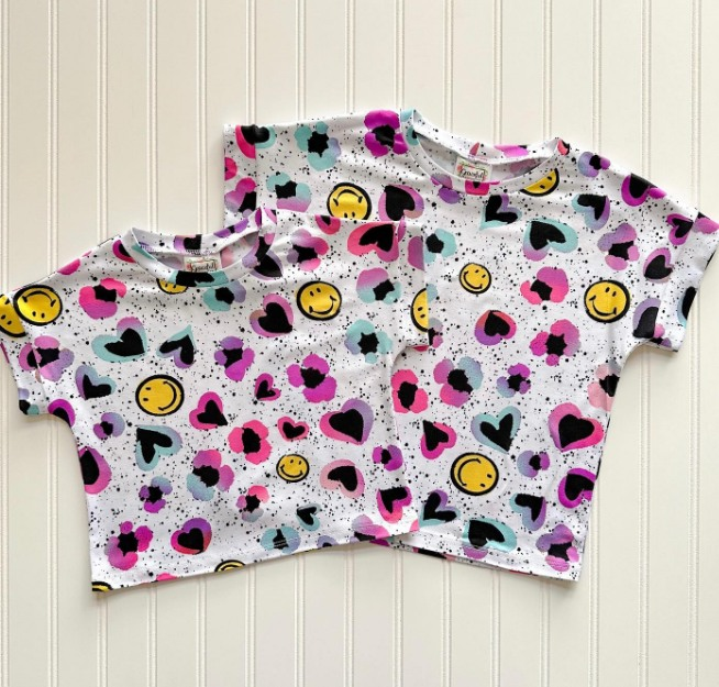 (Pre-order)GT0438 Leopard Heart Smiling Face Print Girls Valentine's Tee Shirts Top
